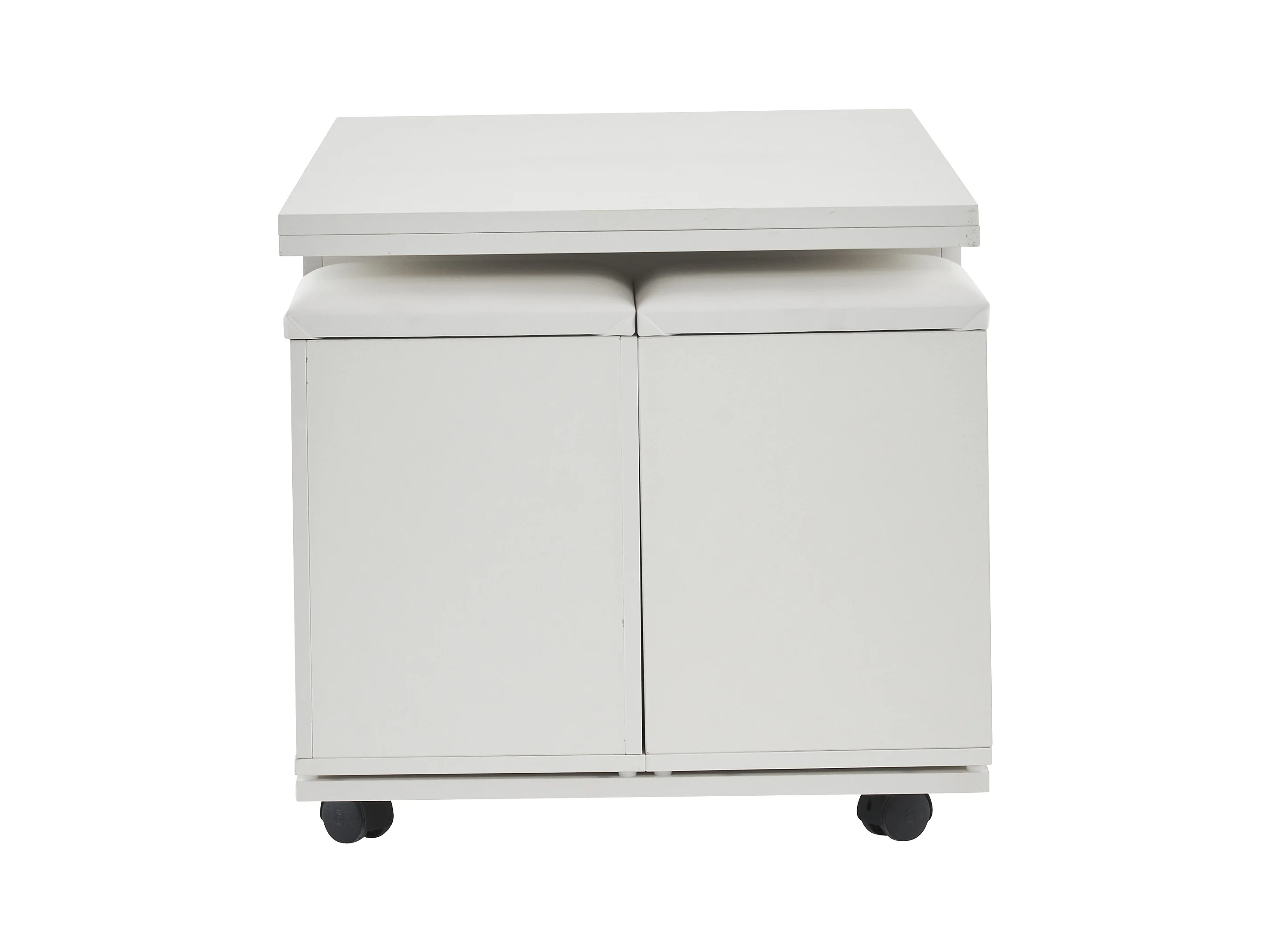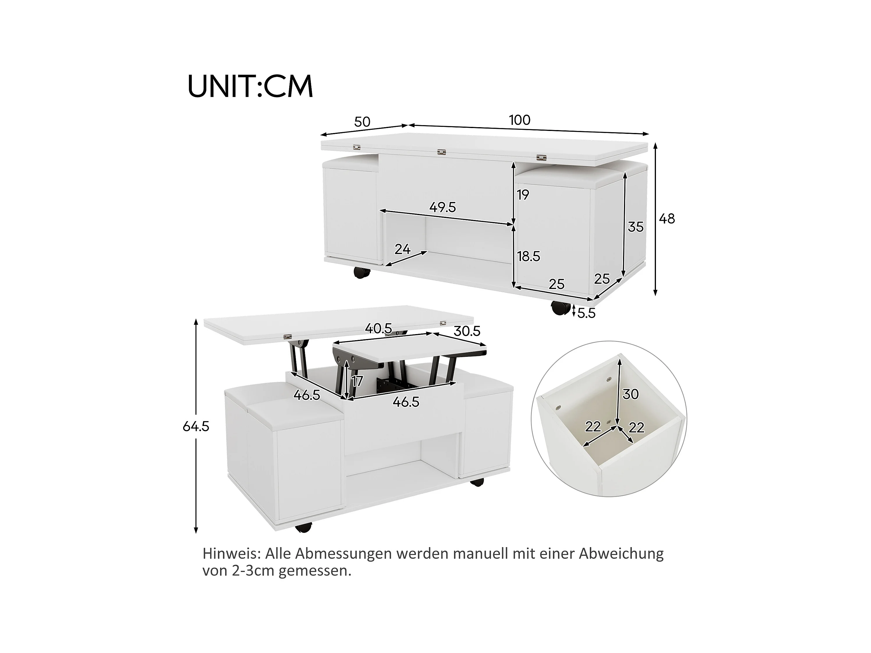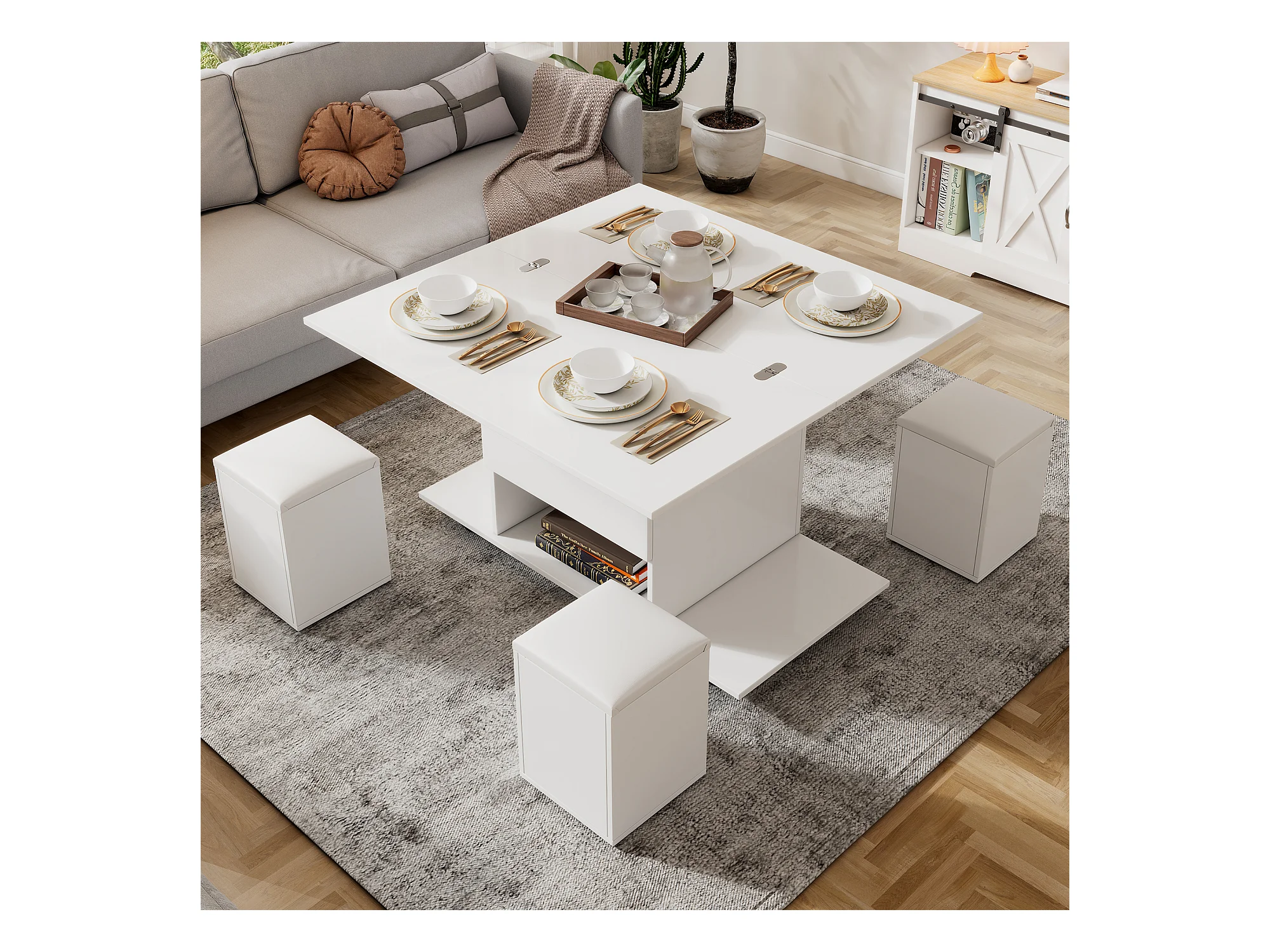 Table basse multifonction réglable en hauteur, plateau déployable en 2 tables, blanc, grande capacité, idéale pour salon, bureau ou repas.