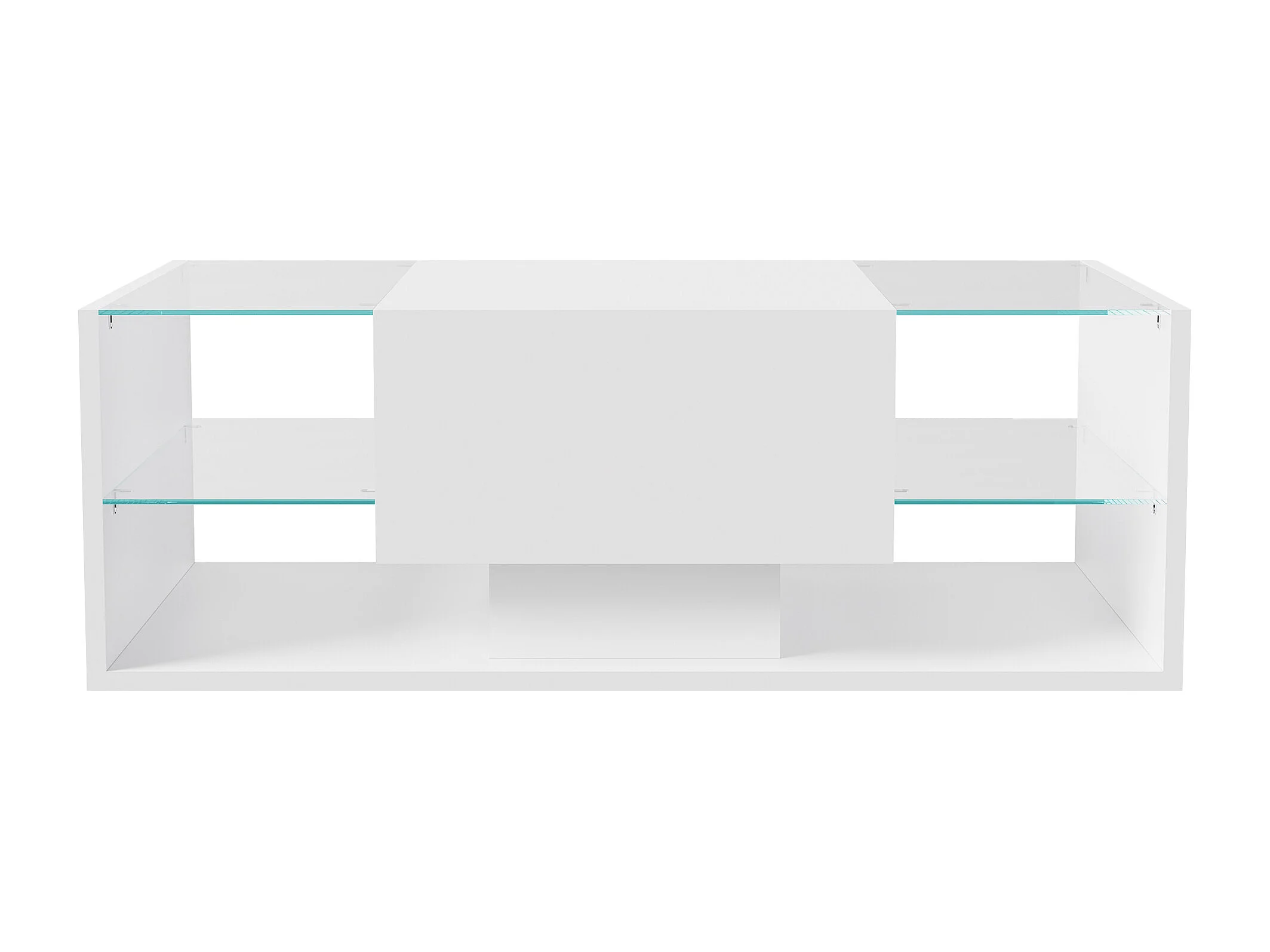 Table basse blanche avec éclairage LED et rangement ouvert – pour salons et bureaux