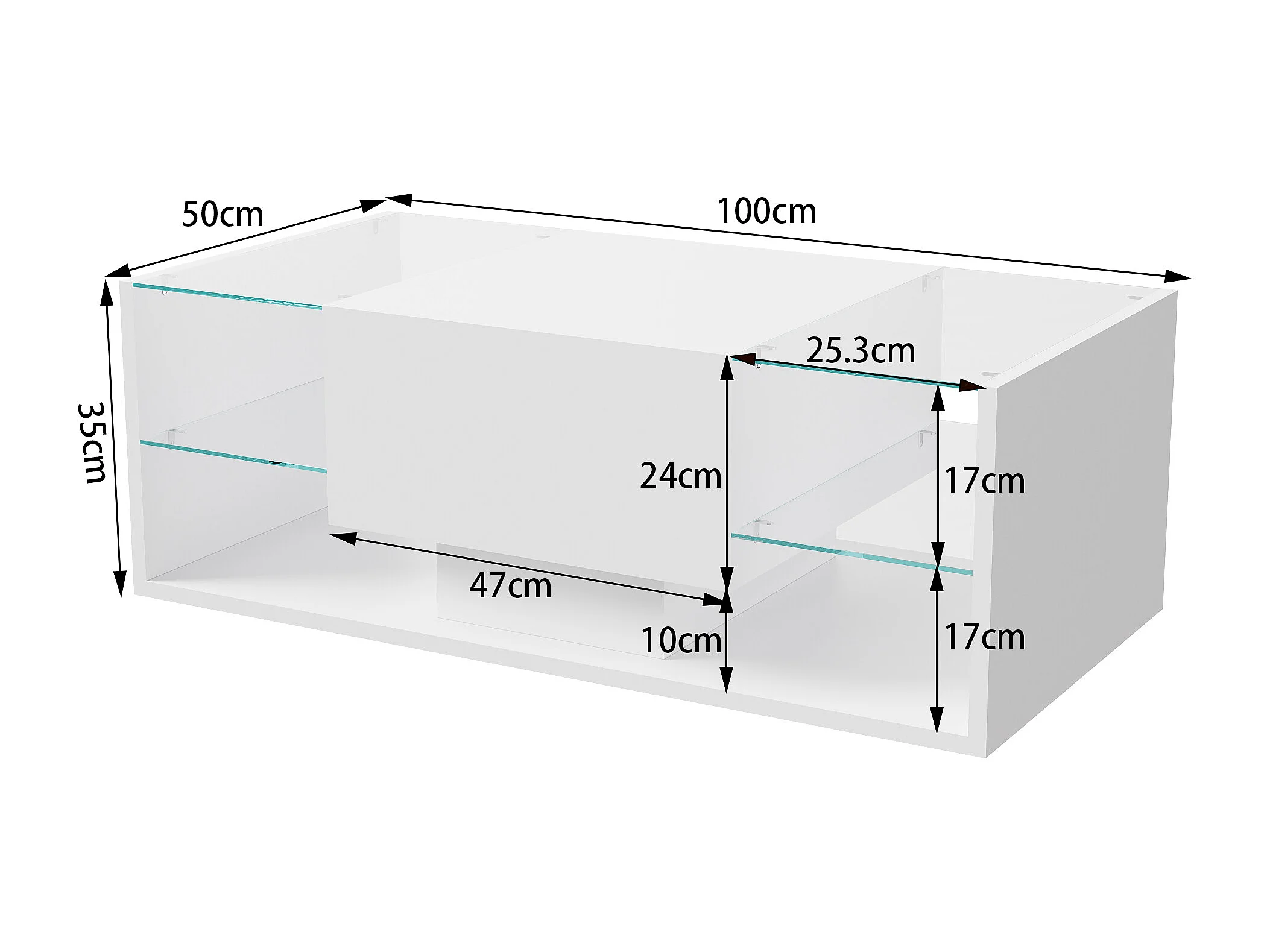 Table basse - NEXU - table de salon - table basse salon - LED - tiroir - étagère en verre trempé - 100x50x35 cm - blanc
