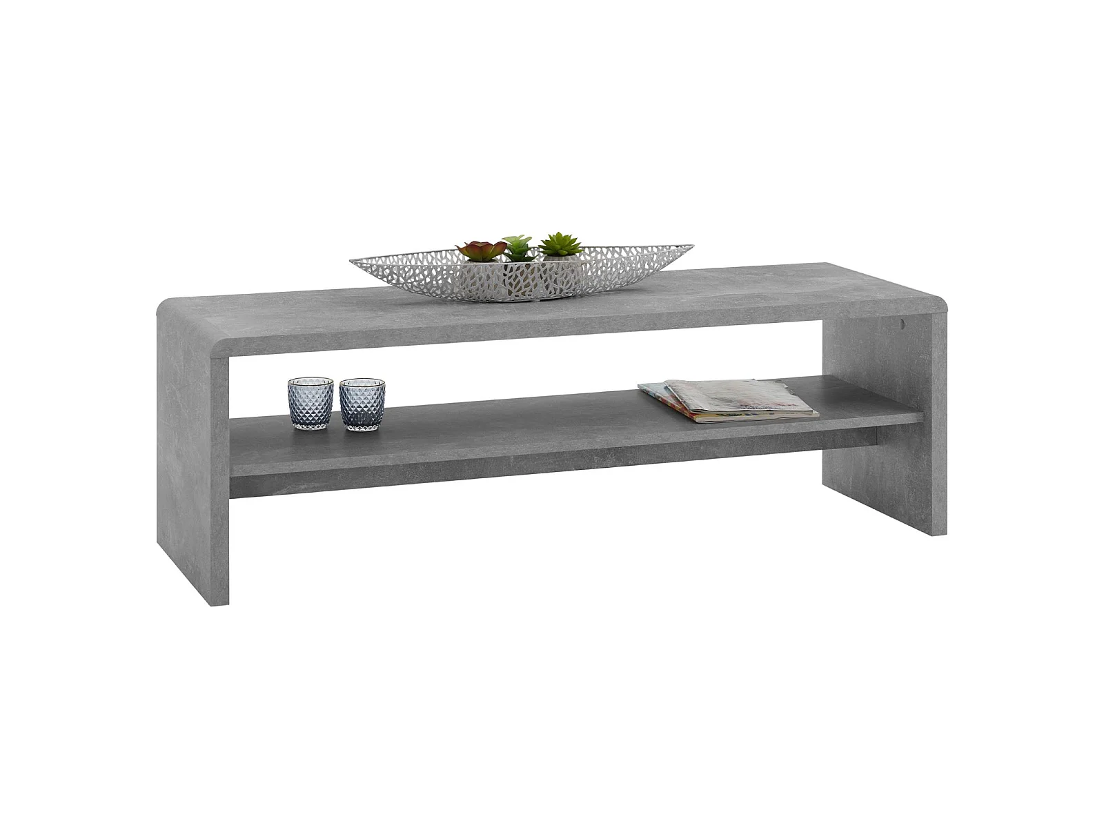 Table basse LORIENT, table de salon rectangulaire avec 1 étagère espace de rangement ouvert, en mélaminé décor béton