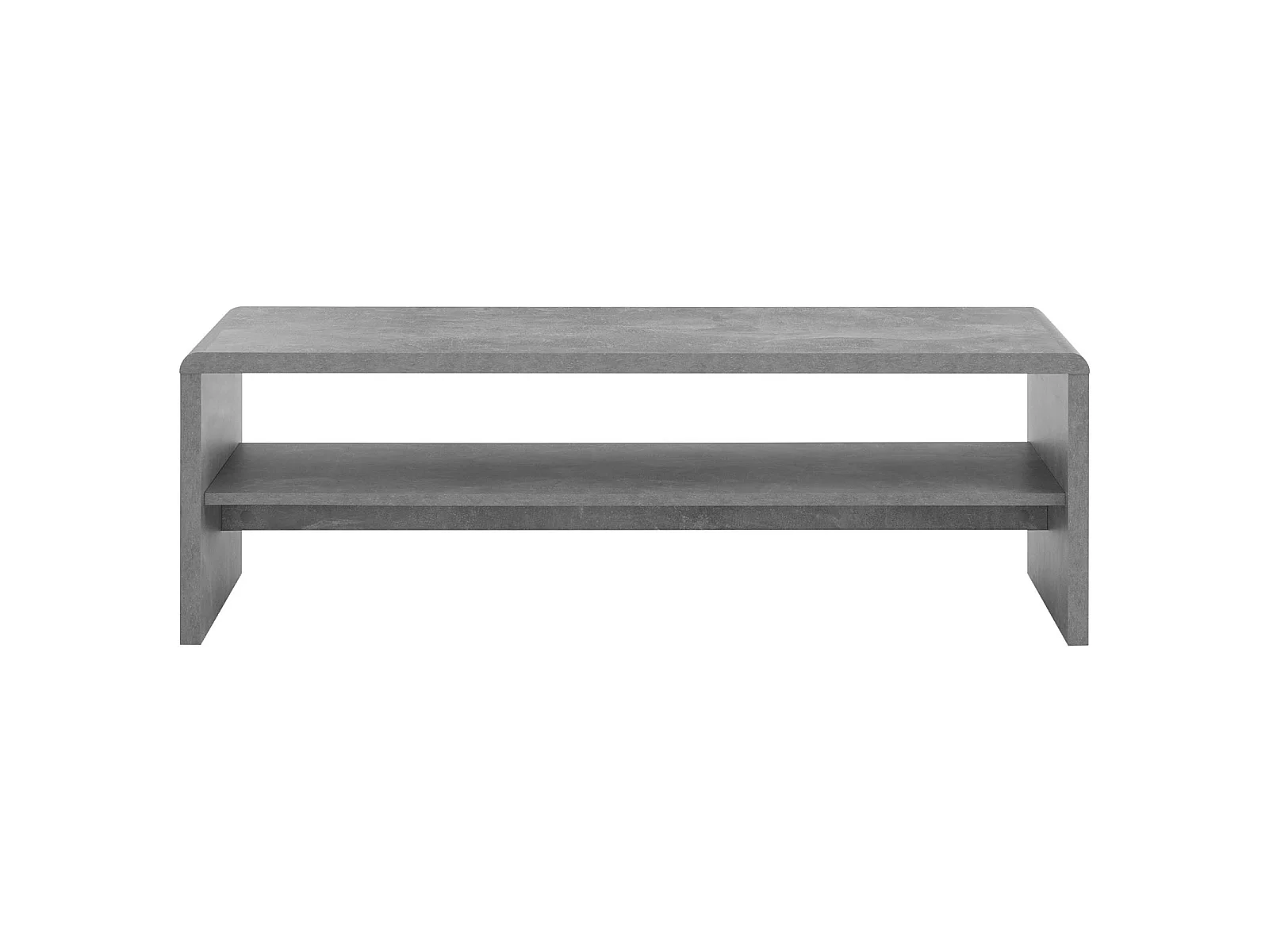 Table basse NOELLE, table de salon rectangulaire ou meuble TV de 120 cm avec 1 étagère de rangement, en mélaminé décor béton