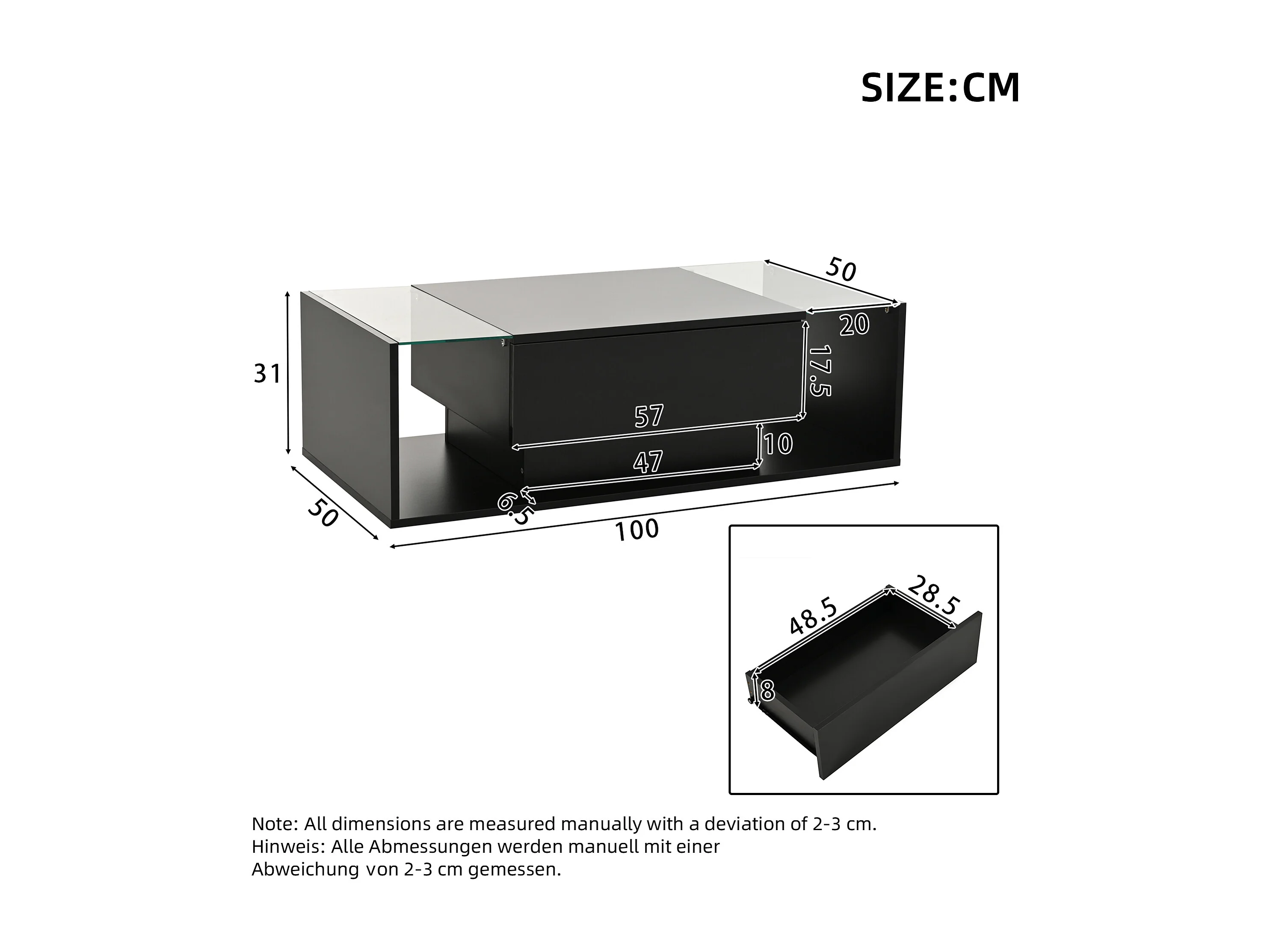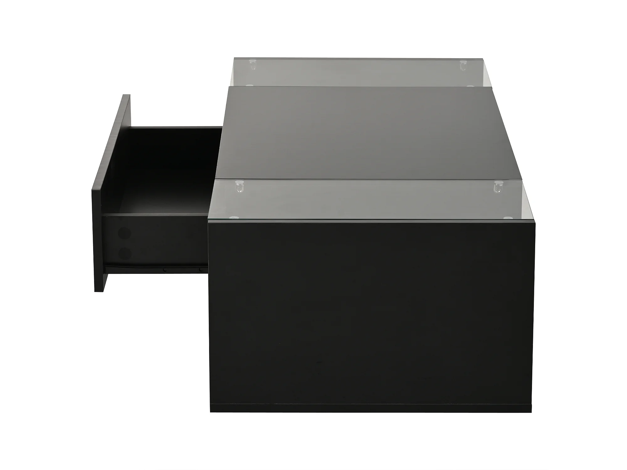 Table basse rectangulaire - Table basse avec éclairage LED et 2 tiroirs - plateau en verre - noir