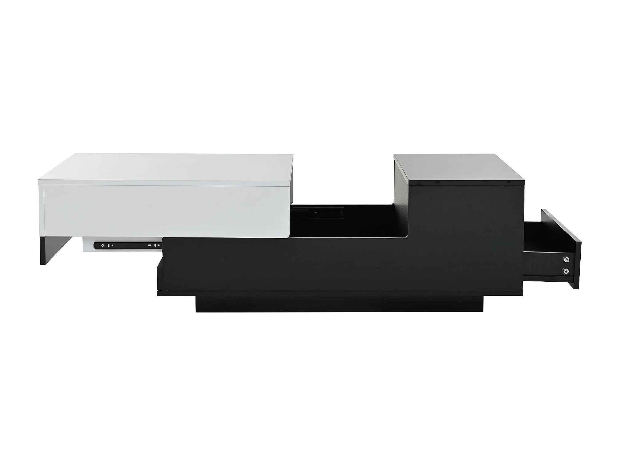 Table basse rectangulaire avec plateau coulissant et 1 tiroir de rangement - noir et blanc