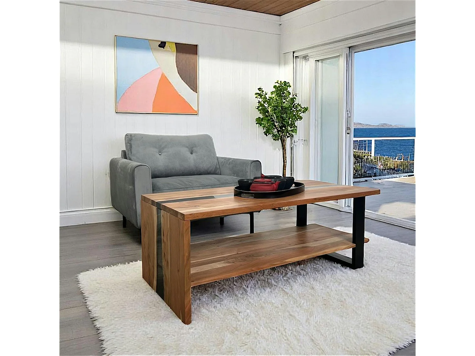Table basse rivière epoxy noir et bois d'acacia BORA