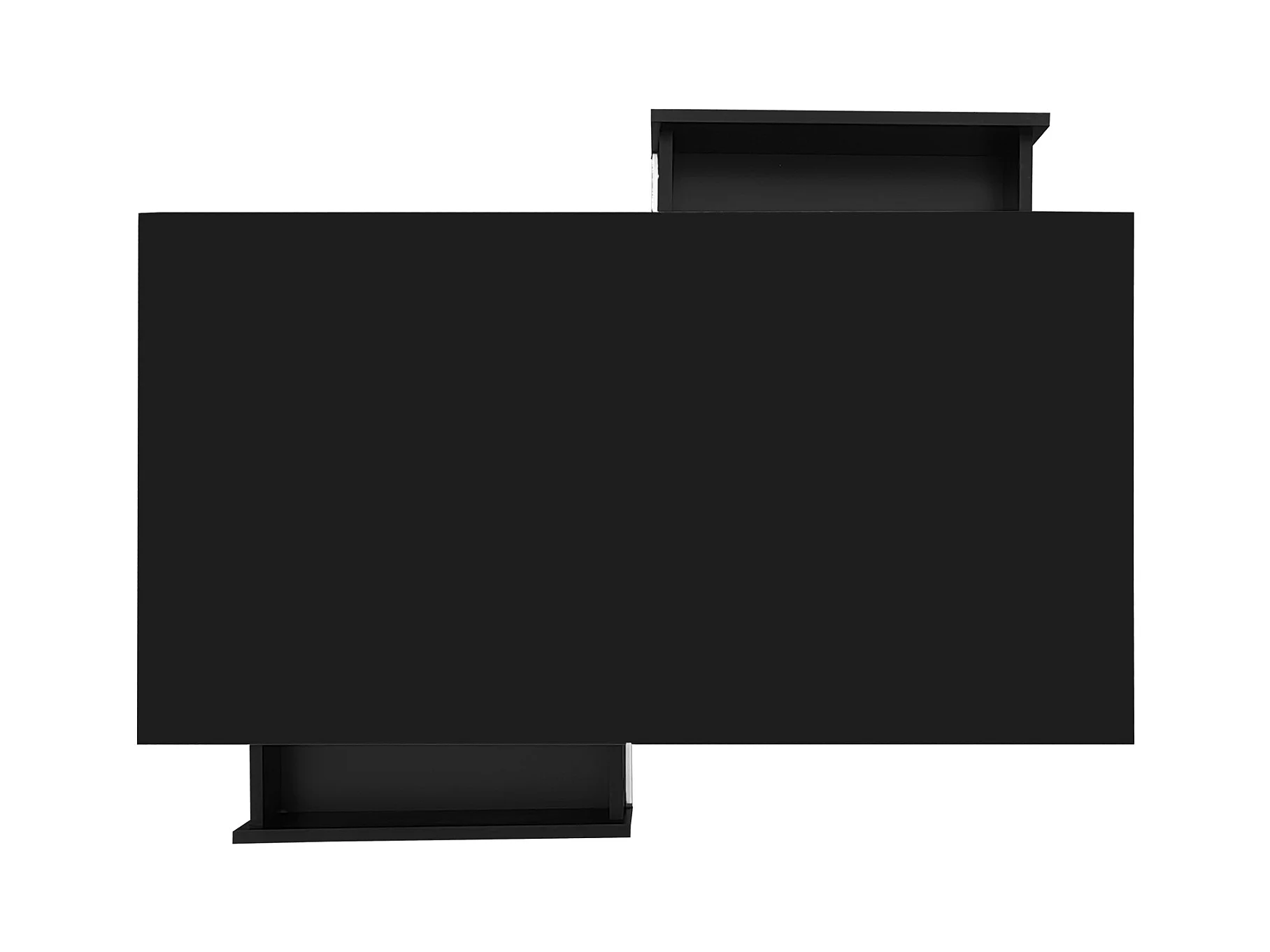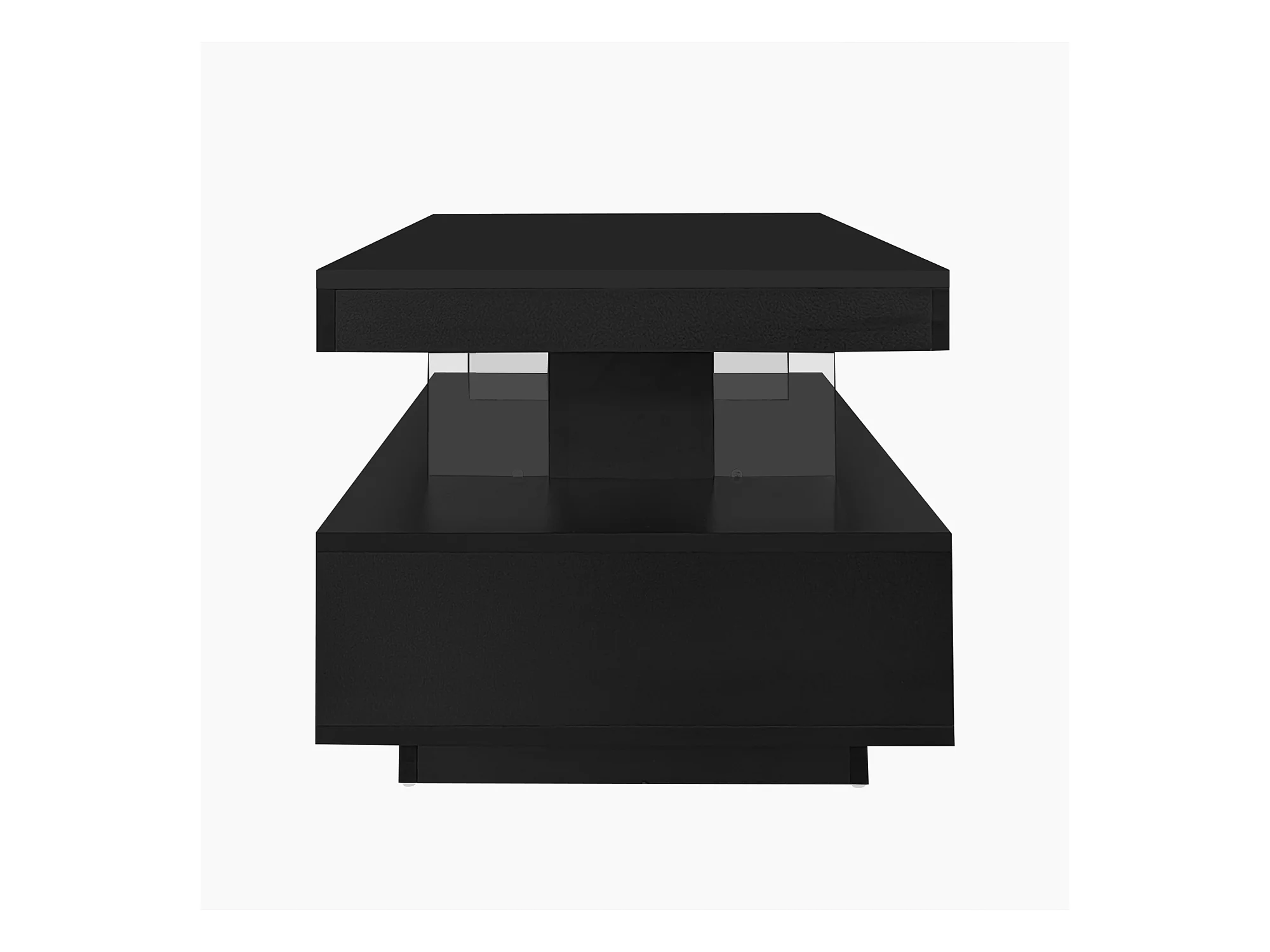 Table basse à deux niveaux avec LED 16 couleurs, finition brillante, étagère ouverte et tiroir coulissant, table centrale rectangulaire noire