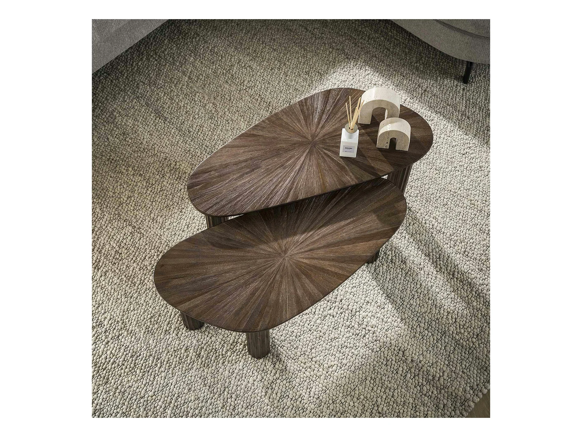 Table basse organique en bois de teck forme galet (lot de 2) YOGY