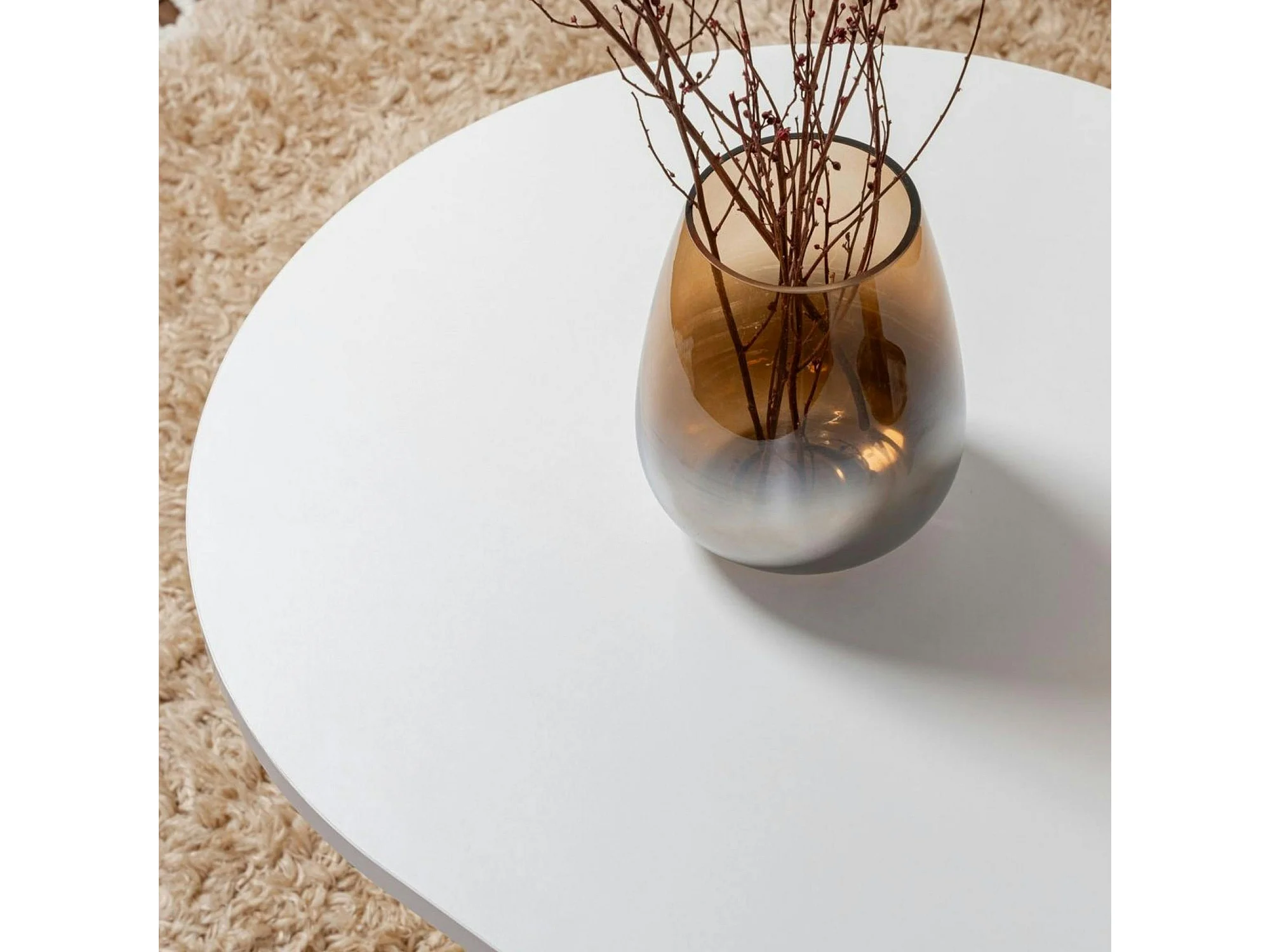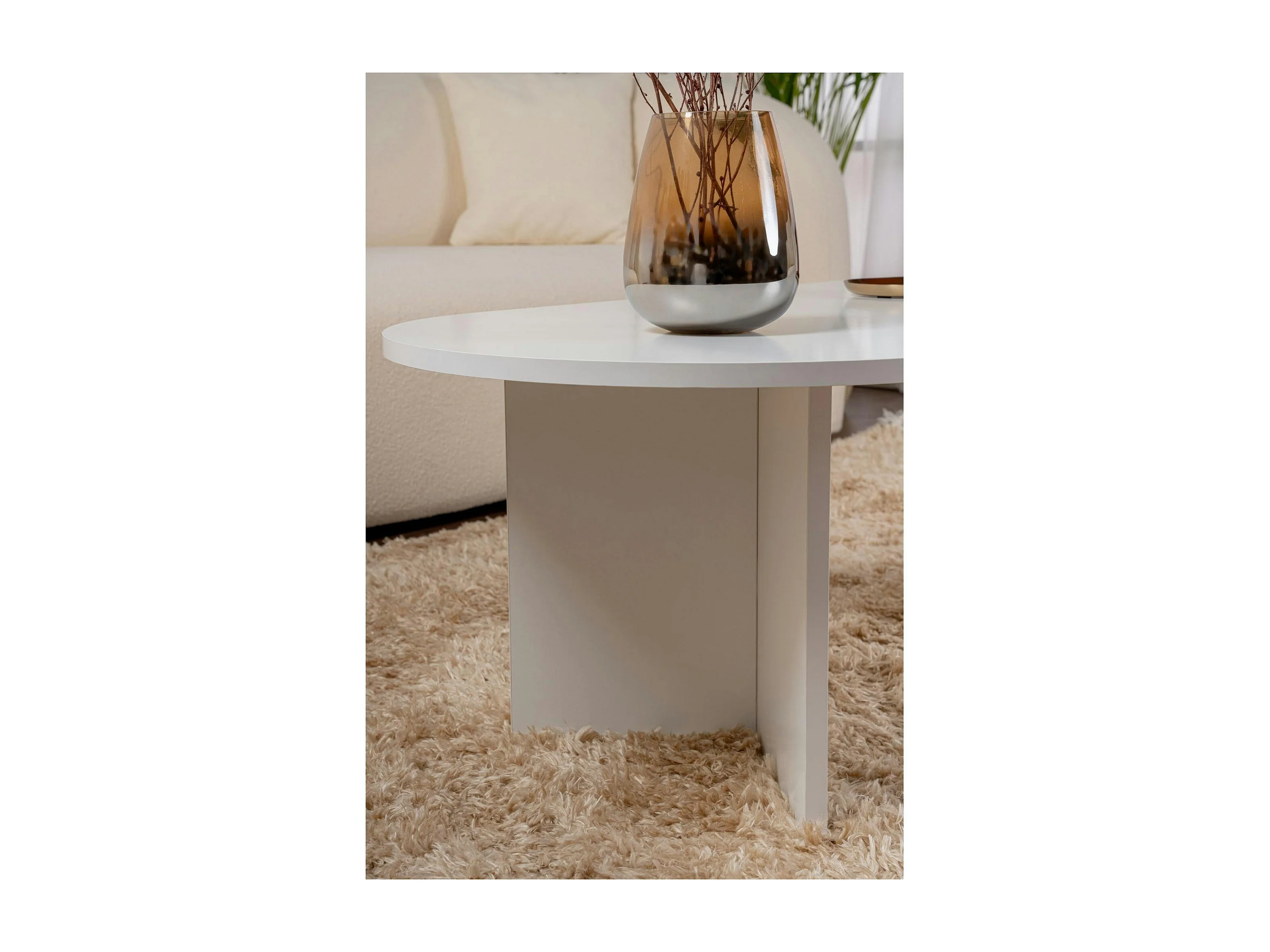 Table basse ovale blanche effet laque - pieds en V MARFA