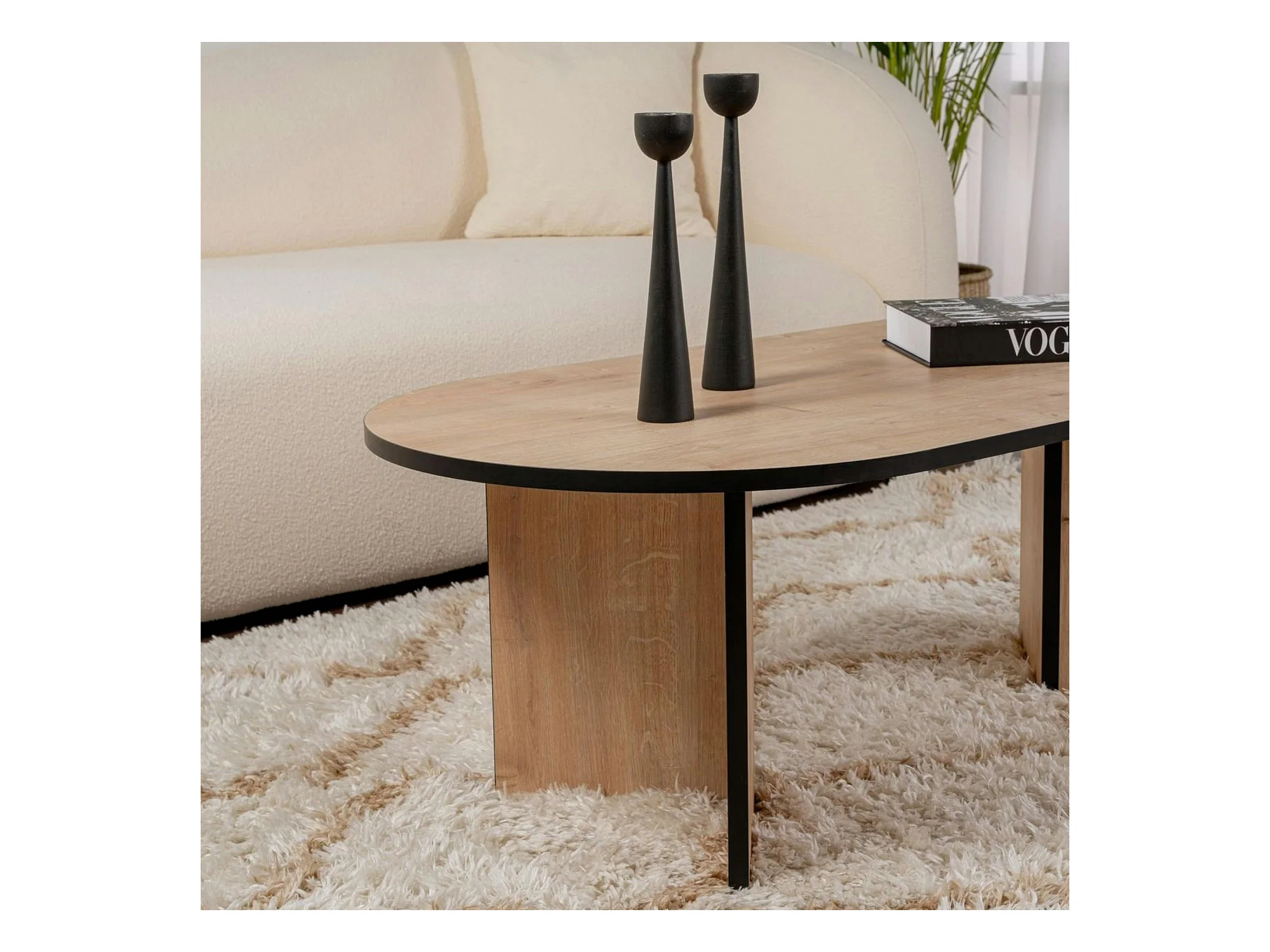Table basse ovale effet chêne clair - pieds en V MARFA