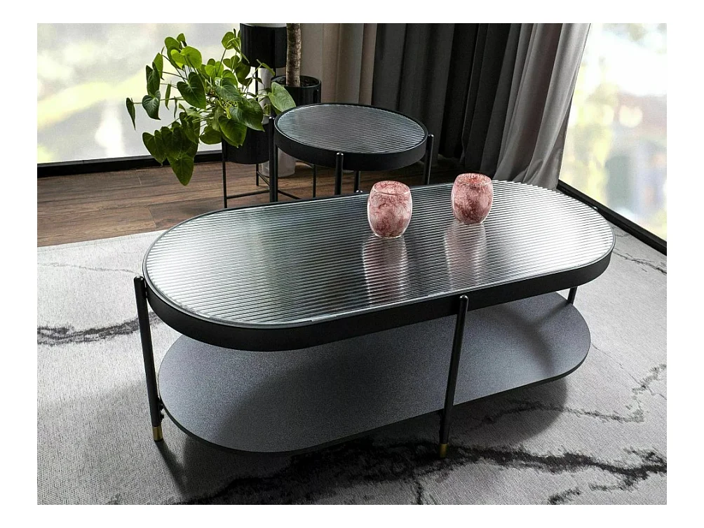 Table basse ovale en métal noir avec plateau en verre Overview - B