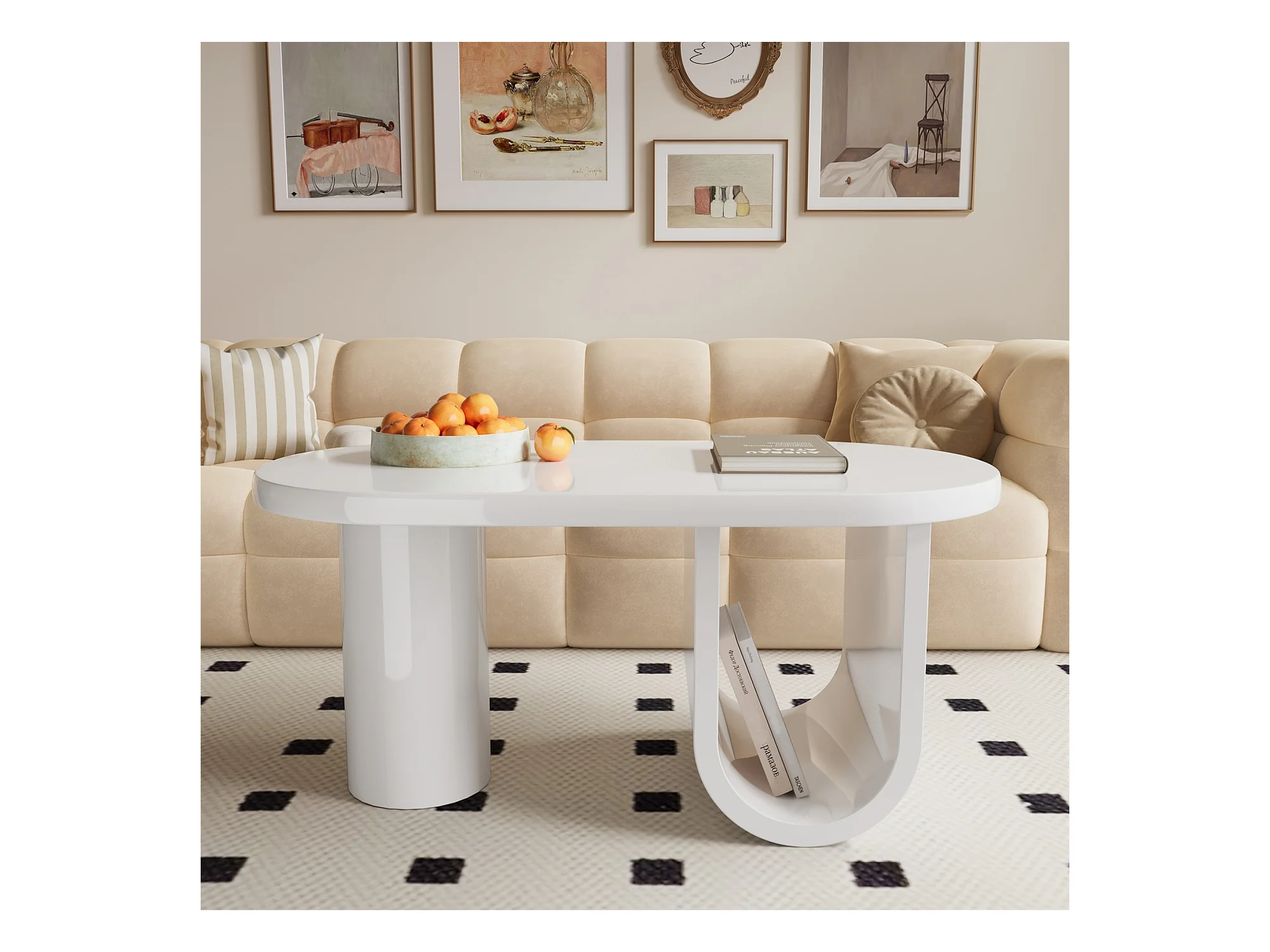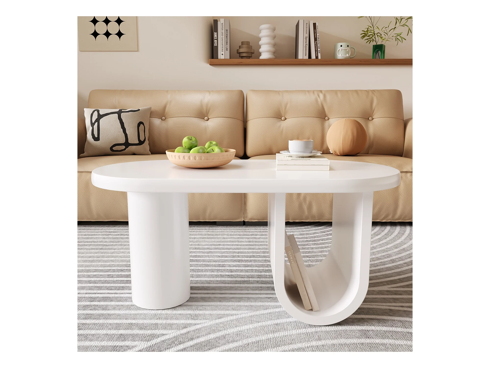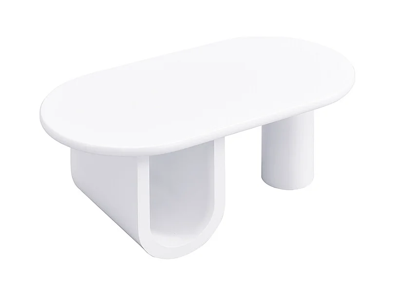 Table Basse Ovale Moderne en Blanc, avec Un Design Simple, des Pieds Solides en Forme de U