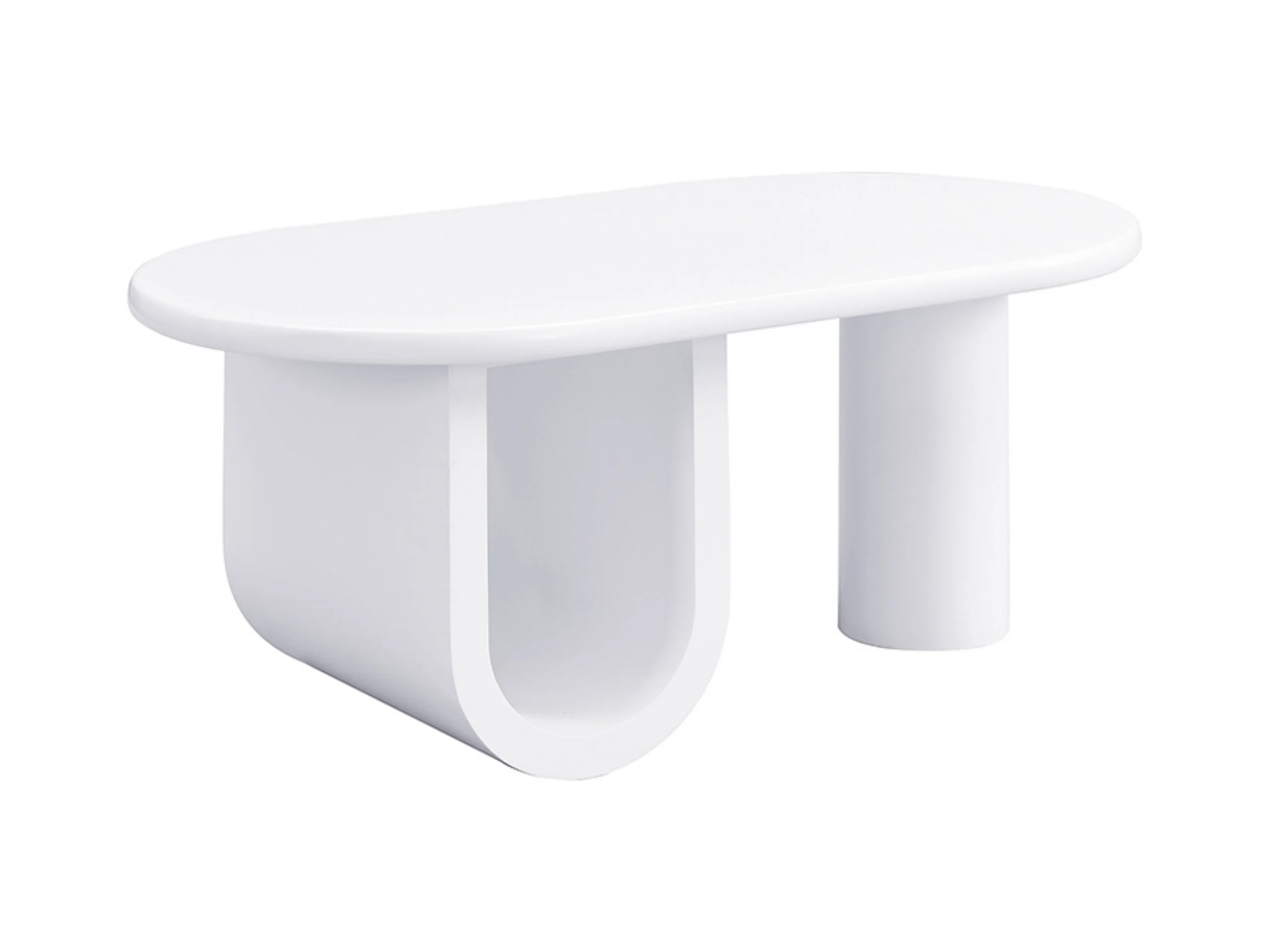 Table basse ovale, Table basse blanche avec pieds en U, matériau MDF, pour salon et bureau