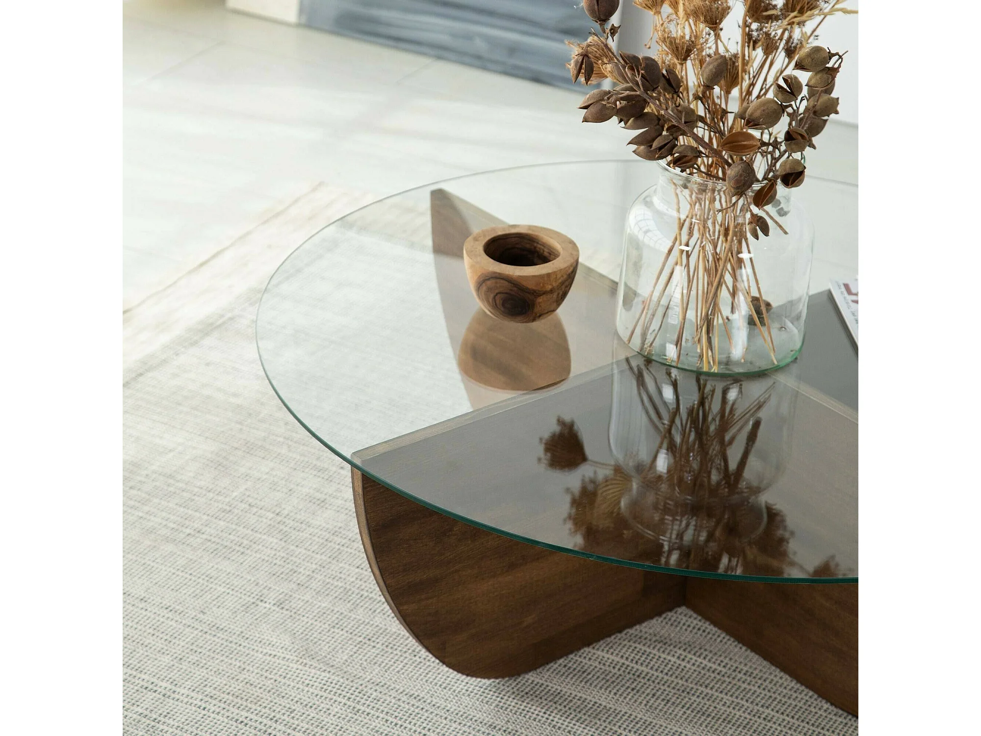Table basse Phoebe, Table basse, Porte-revues pour canapé, Etagère de salon, 90x90h30 cm, Noyer