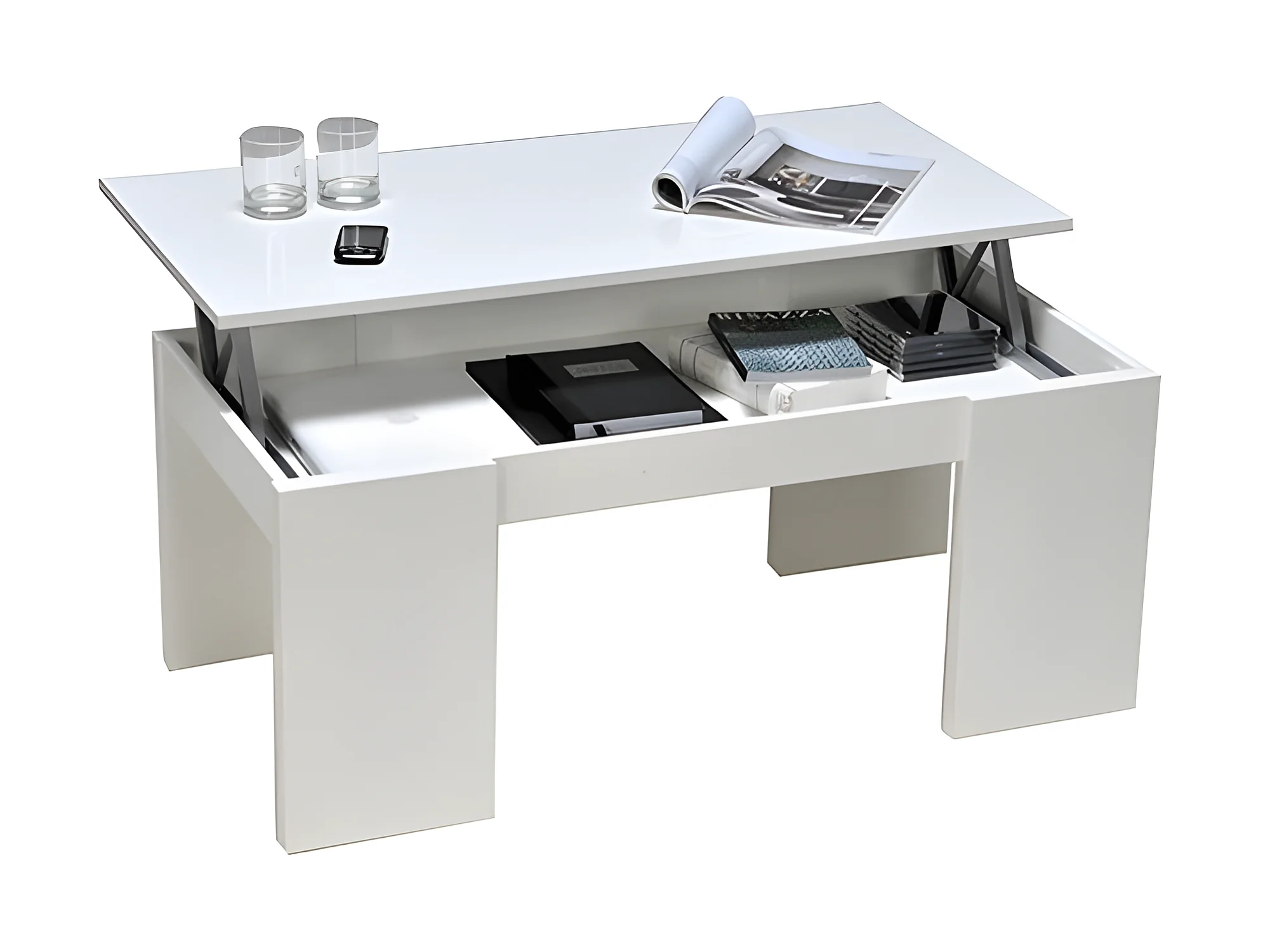 Table basse plateau relevable DARWIN 120x60cm / Blanc