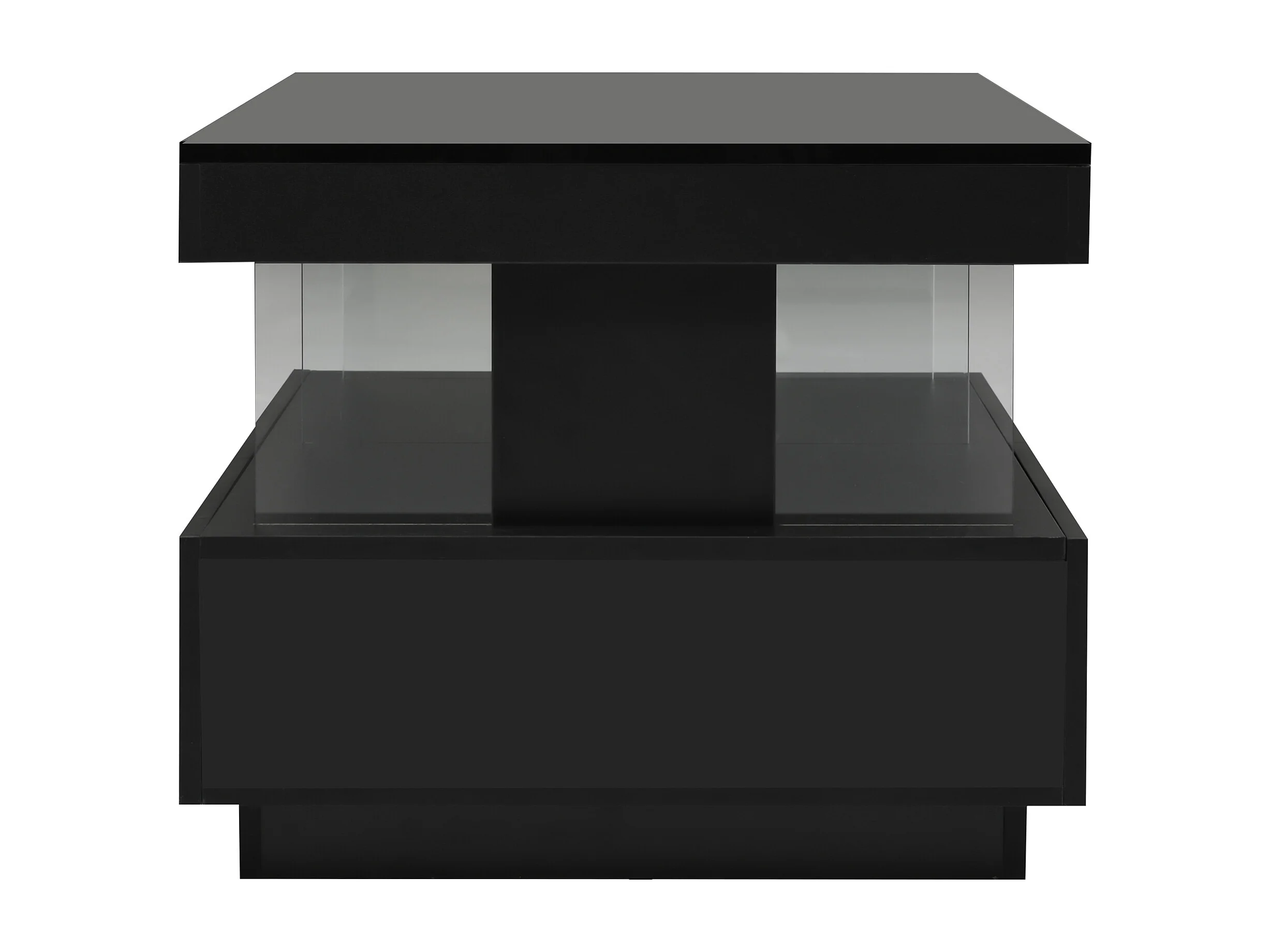 Table basse noire avec tiroir et éclairage LED, table d'appoint en verre trempé 100x50x31cm
