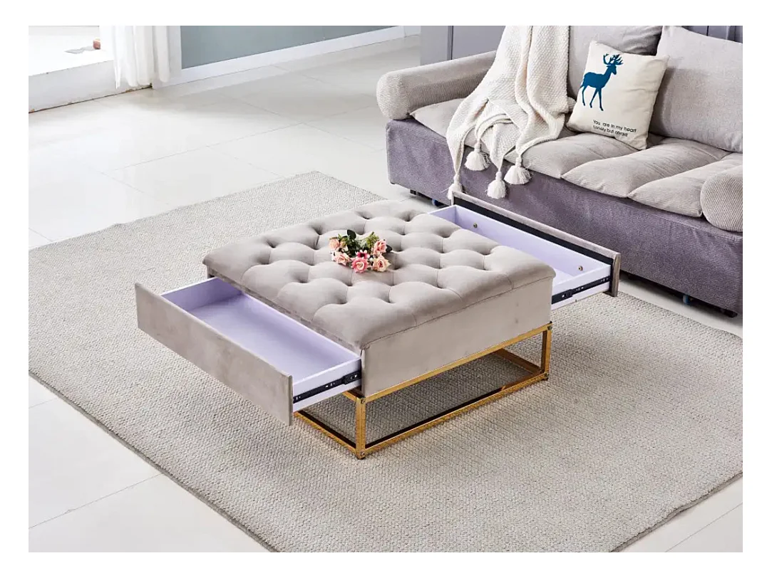 Table Basse rangements TIROIRS plateau velours capitonné