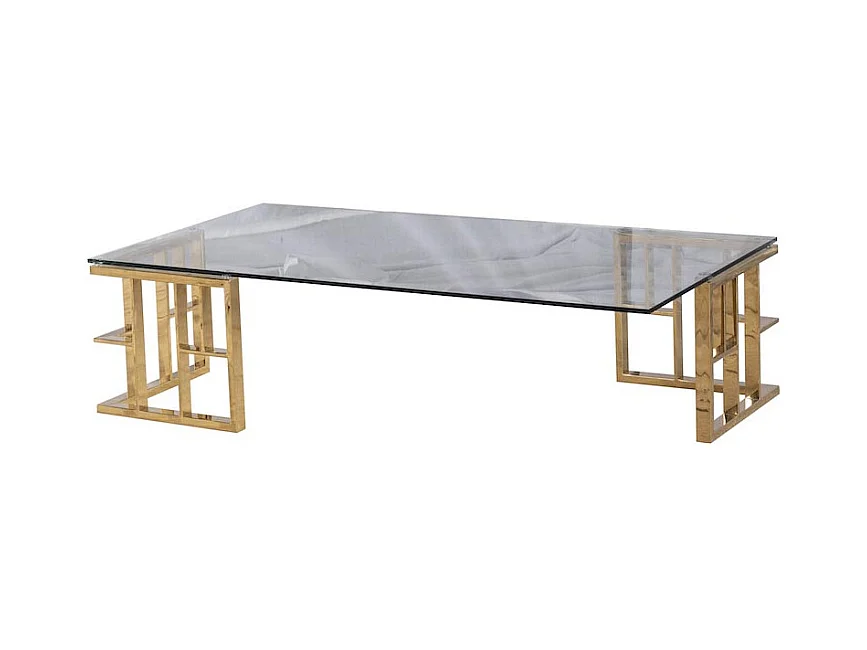 Table basse rectangle LEO - Verre/Gold - Acier / Verre