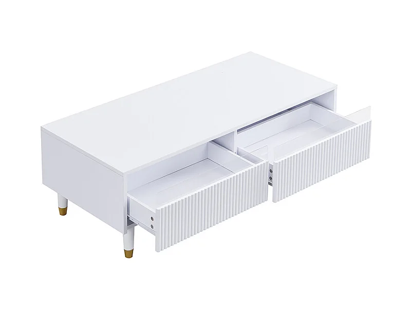 Table basse rectangulaire blanc - Table basse avec deux tiroirs et LED - pour le salon