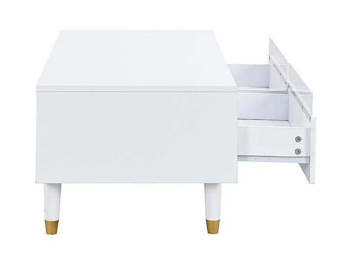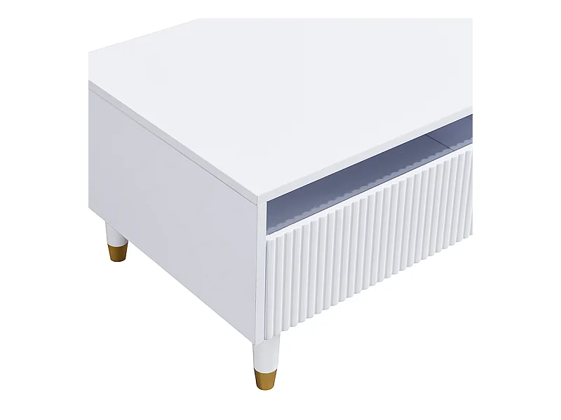 Table basse blanc avec 1 tiroir de rangement et étagères ouvertes, éclairage LED - pour salon