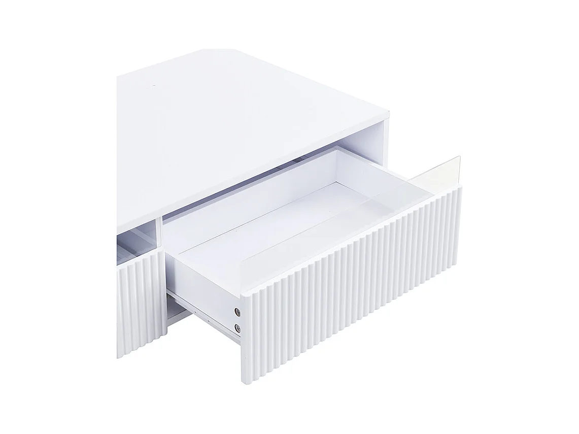 Table basse blanche avec éclairage LED réglable et 2 tiroirs à motif rayé - pour salons et bureaux