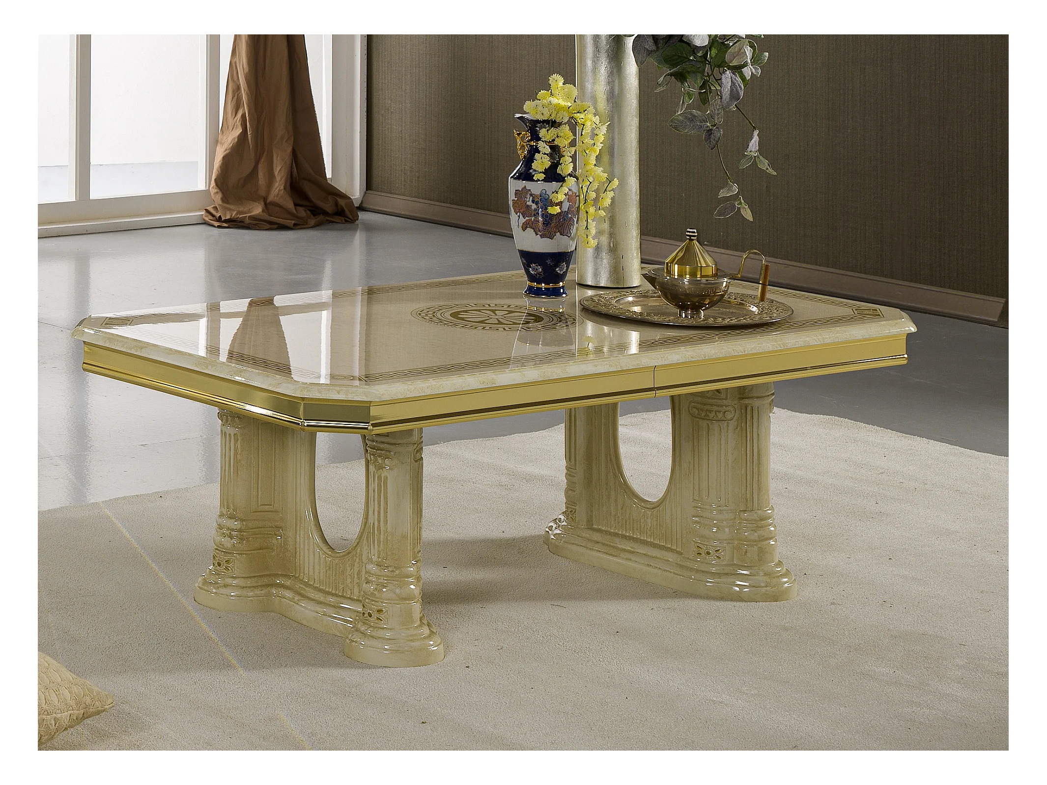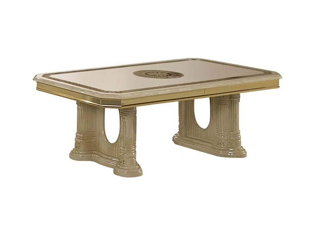 Table basse rectangulaire bois vernis laqué brillant beige et doré Vinza 130cm