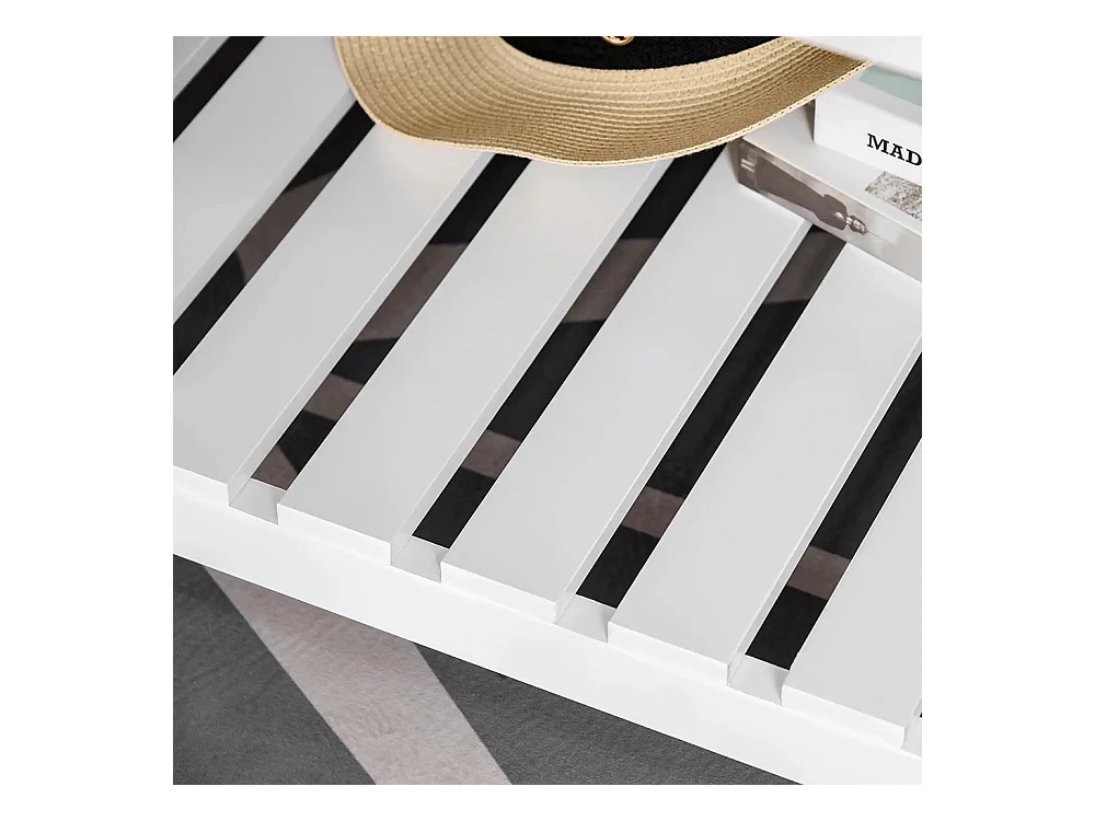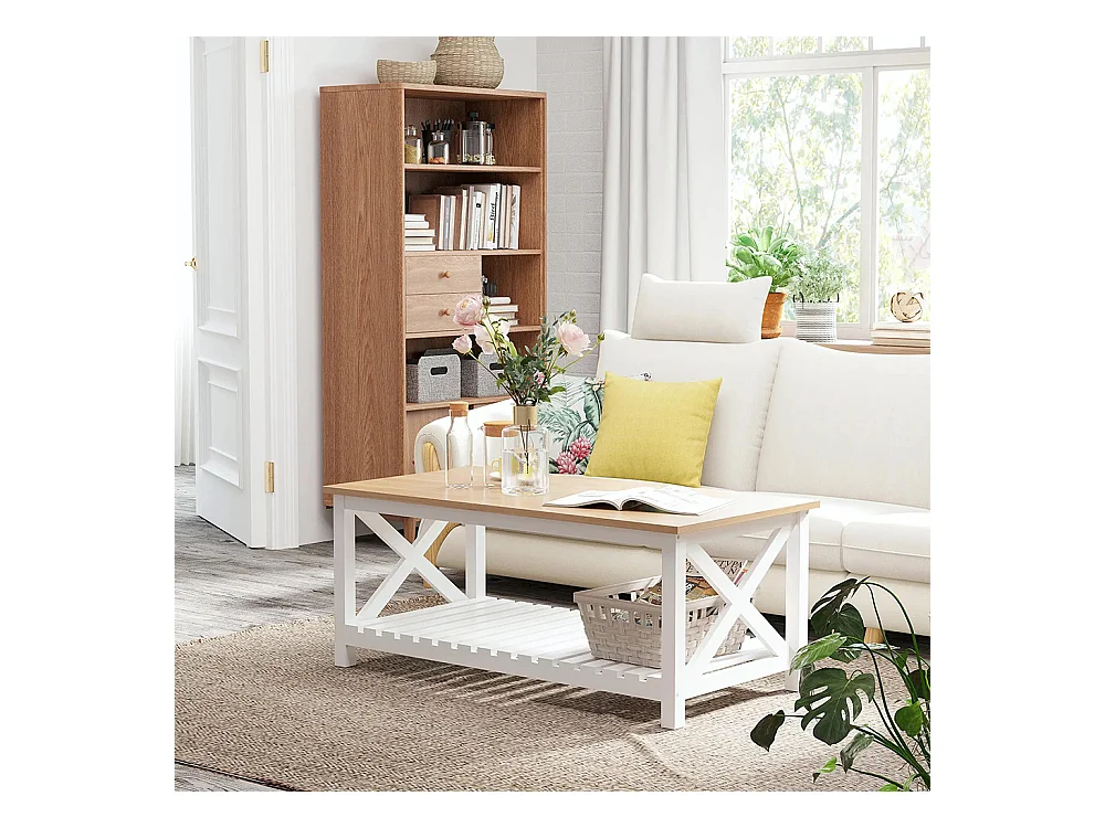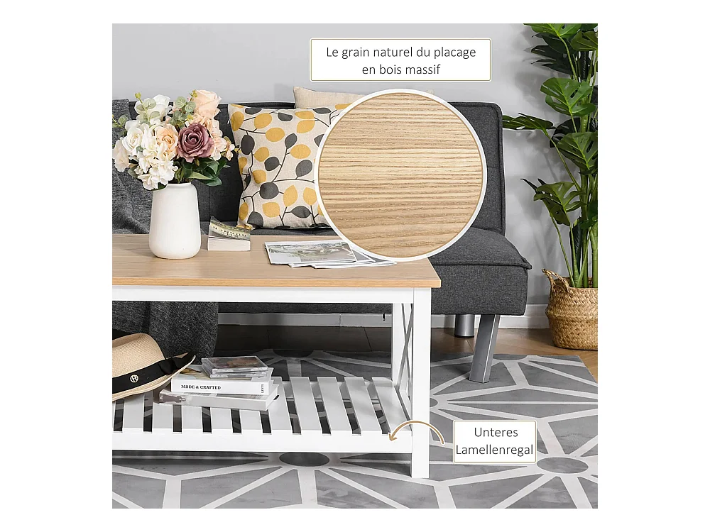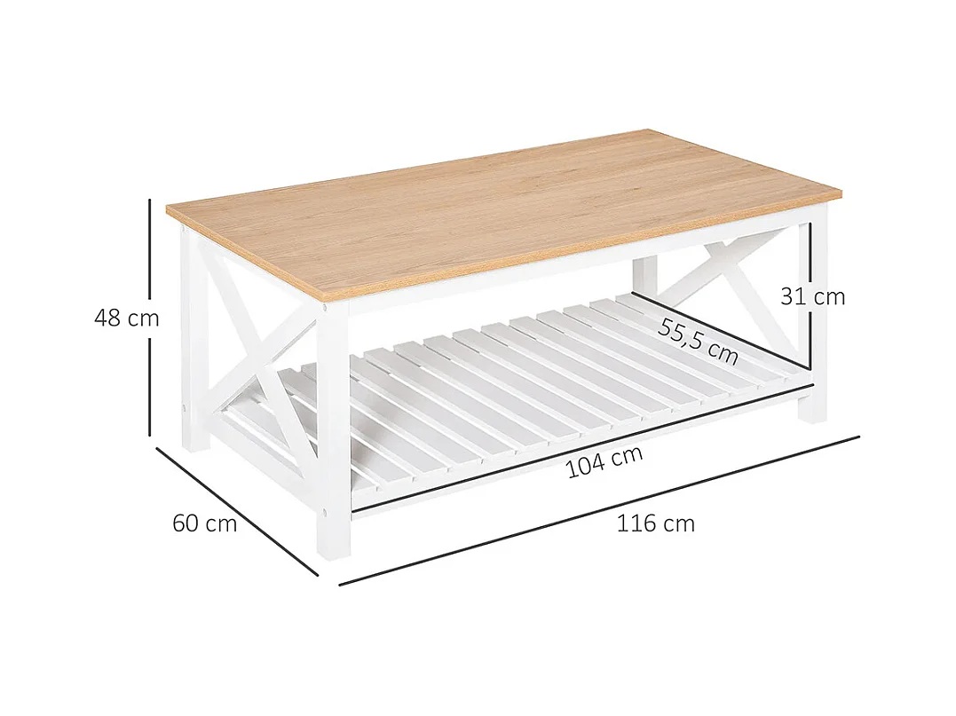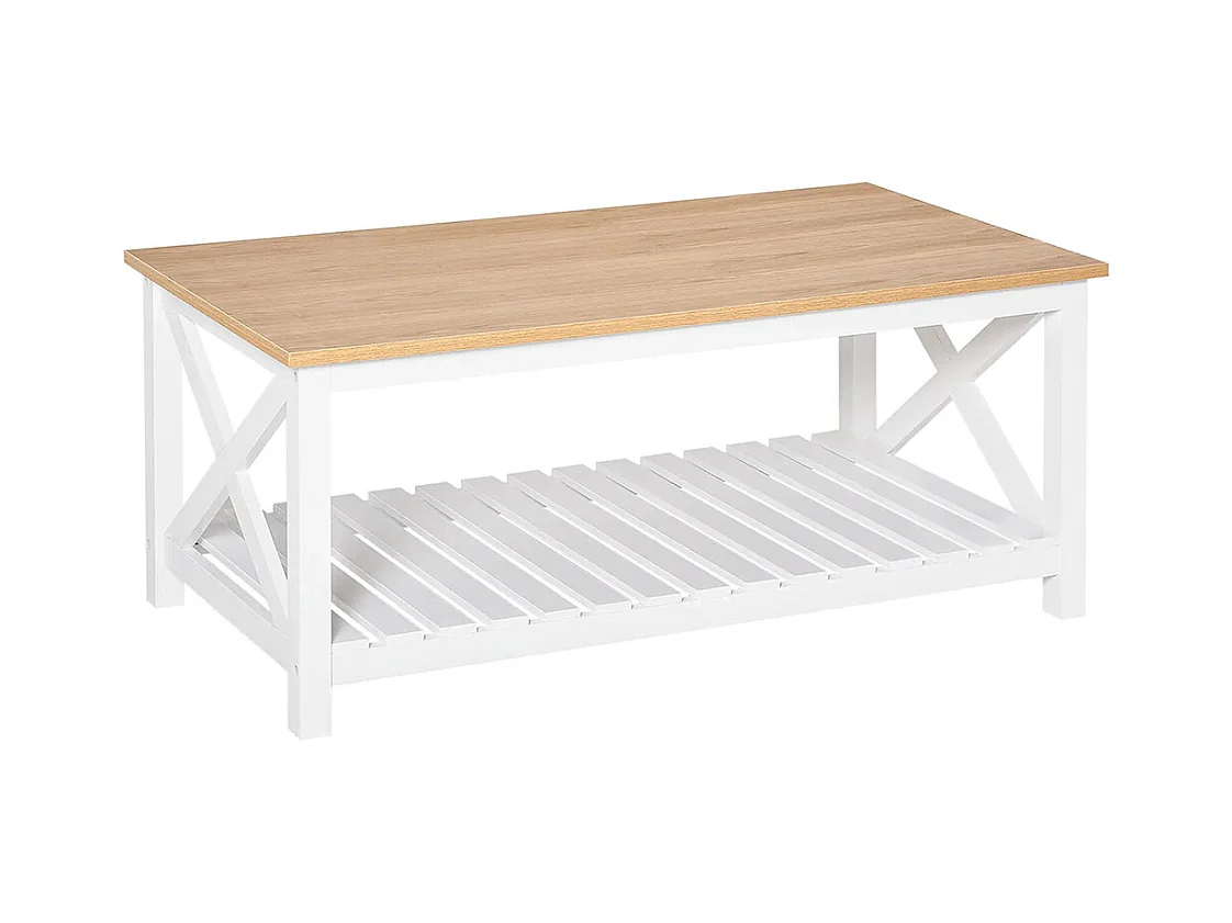 Table Basse rectangulaire dim. 116L x 60l x 48H cm étagère à Lattes Plateau Imitation chêne Clair MDF Blanc
