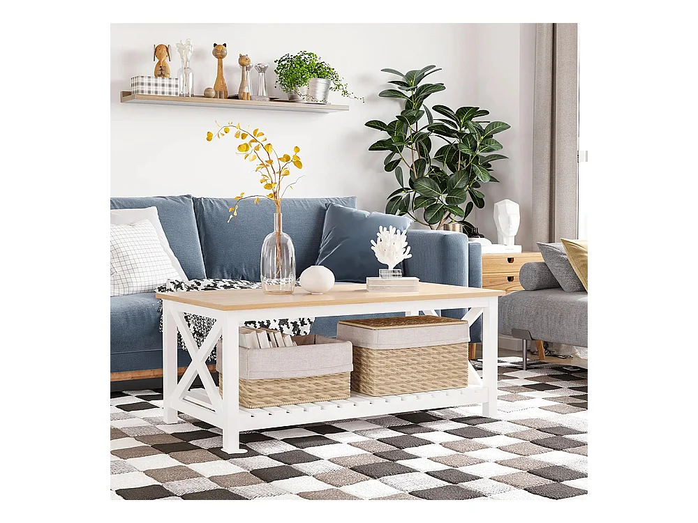 Table basse de salon effet bois blanche 100 x 60 x 42 cm DEC036964