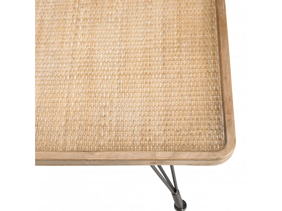 DORIANE - Table basse rectangulaire plateau cannage naturel pieds métal noir