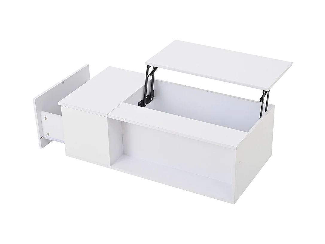 Table basse relevable 100x50x35.5-49.5cm avec 4 compartiments de rangement cachés, corps en blanc laqué, LED et USB inclus