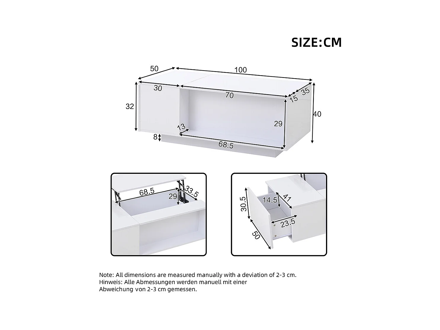 Table basse avec mécanisme de levage moderne double espace de rangement caché naturel+blanc