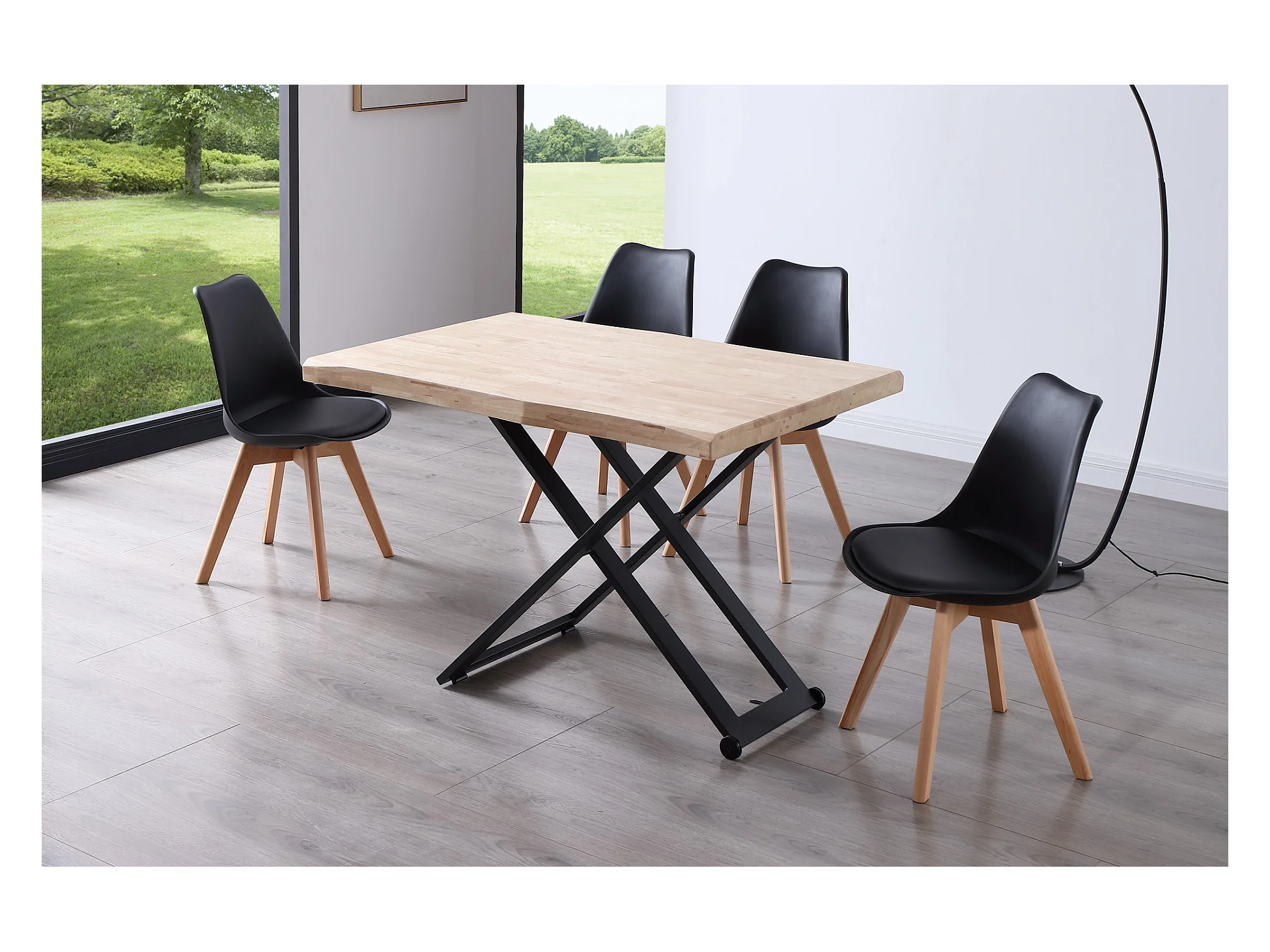 Table basse relevable de salon en bois de chêne naturel avec pieds en métal noir Longueur 120 x Profondeur 80 x Hauteur 49-76 cm