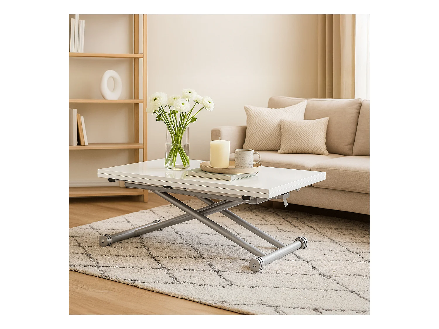 Table basse relevable Philadelphia Blanc laqué
