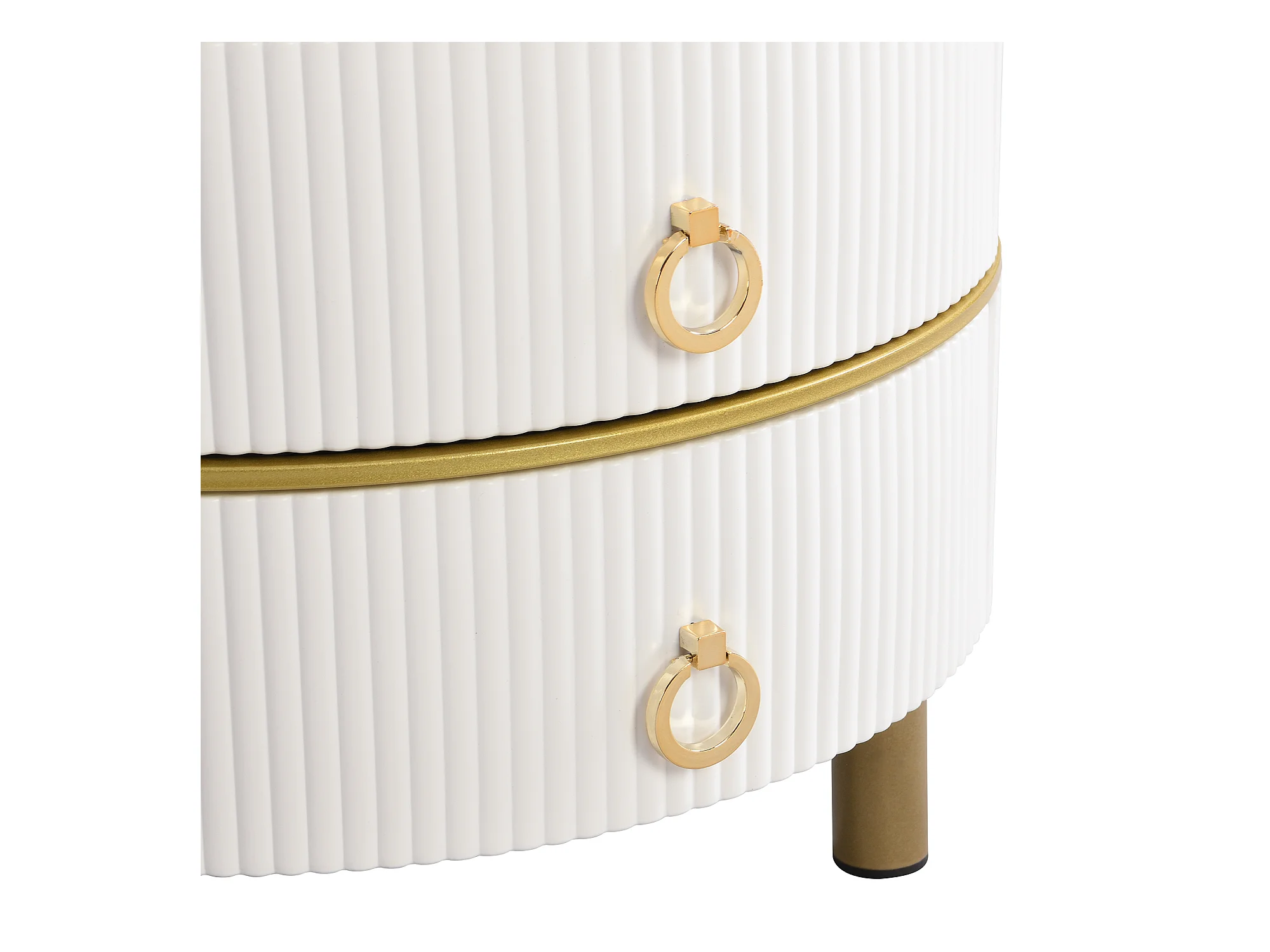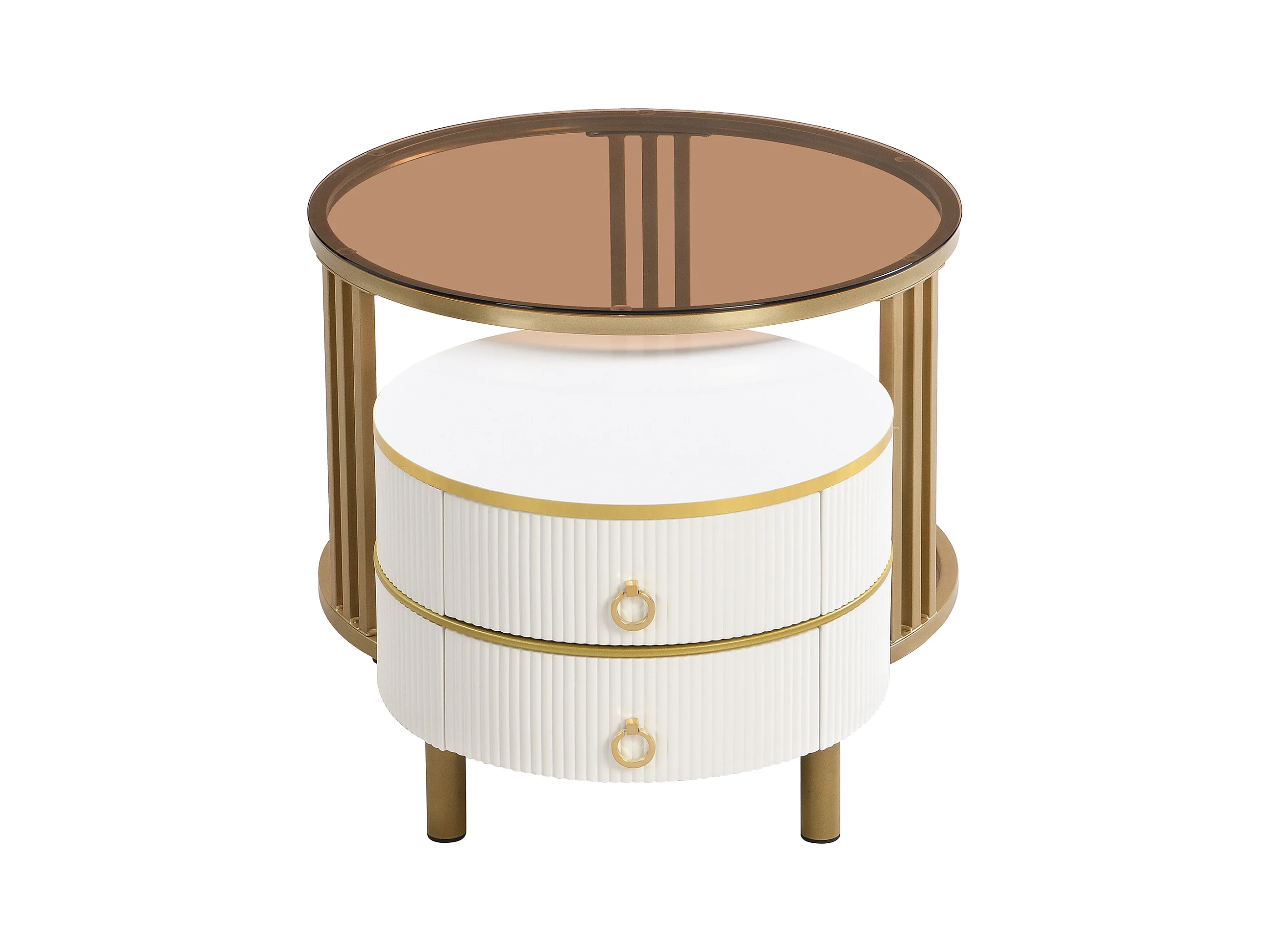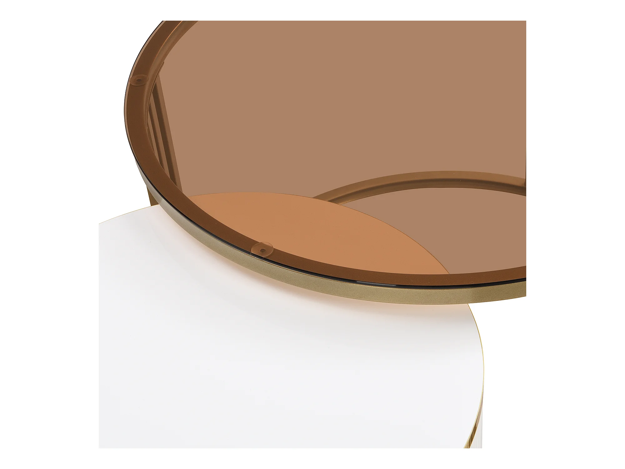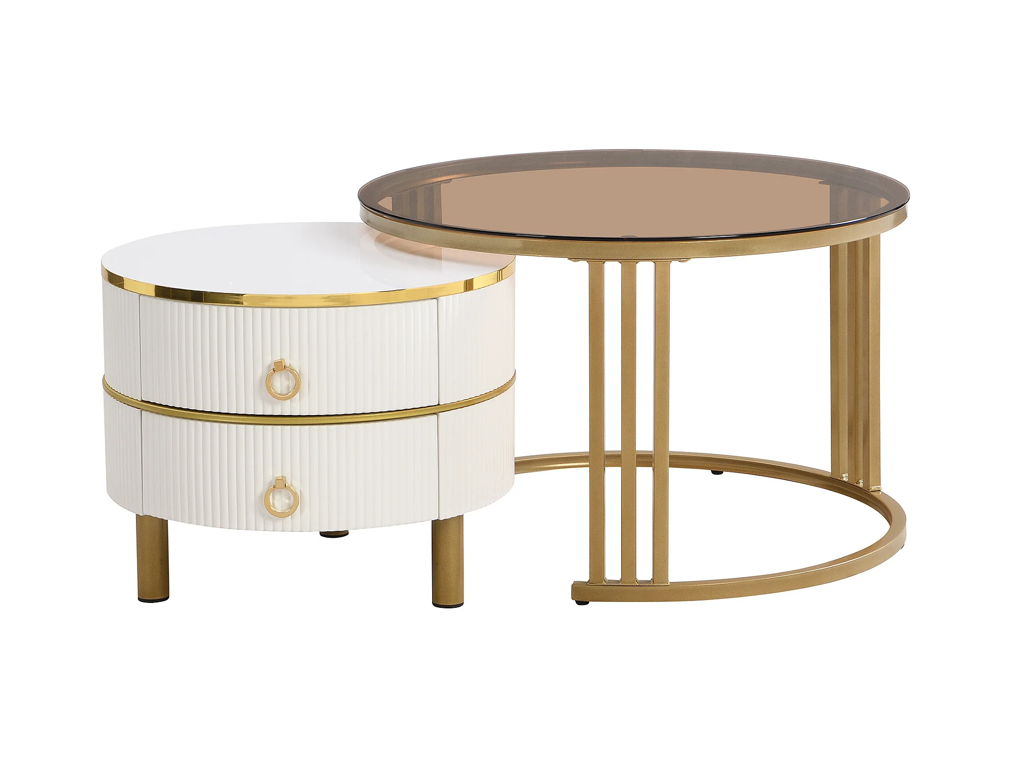 Lot de 2 tables basses - Table basse ronde avec plateau blanc et plateau marron - 2 tiroirs