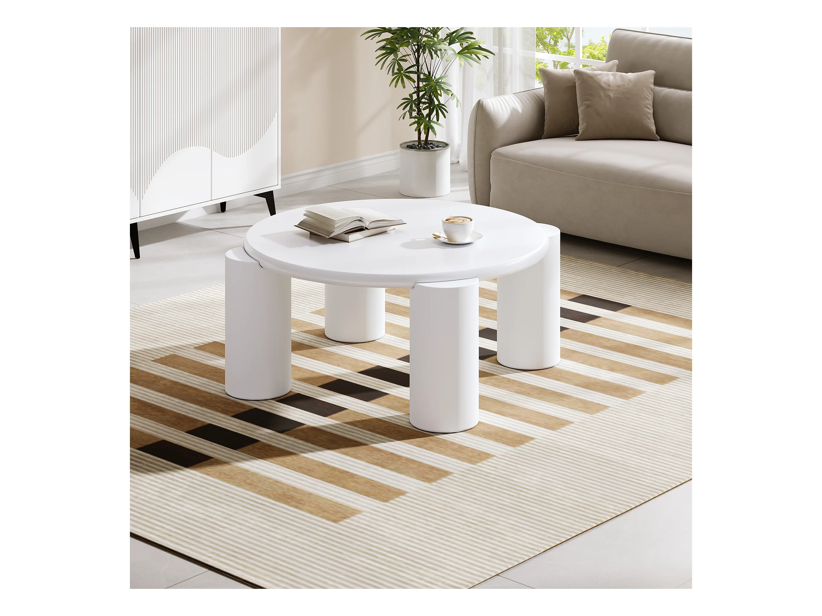 Table basse ronde 70x70x41cm - Table basse blanche avec plateau en MDF et 4 pieds de support - convient pour salon, chambre, balcon
