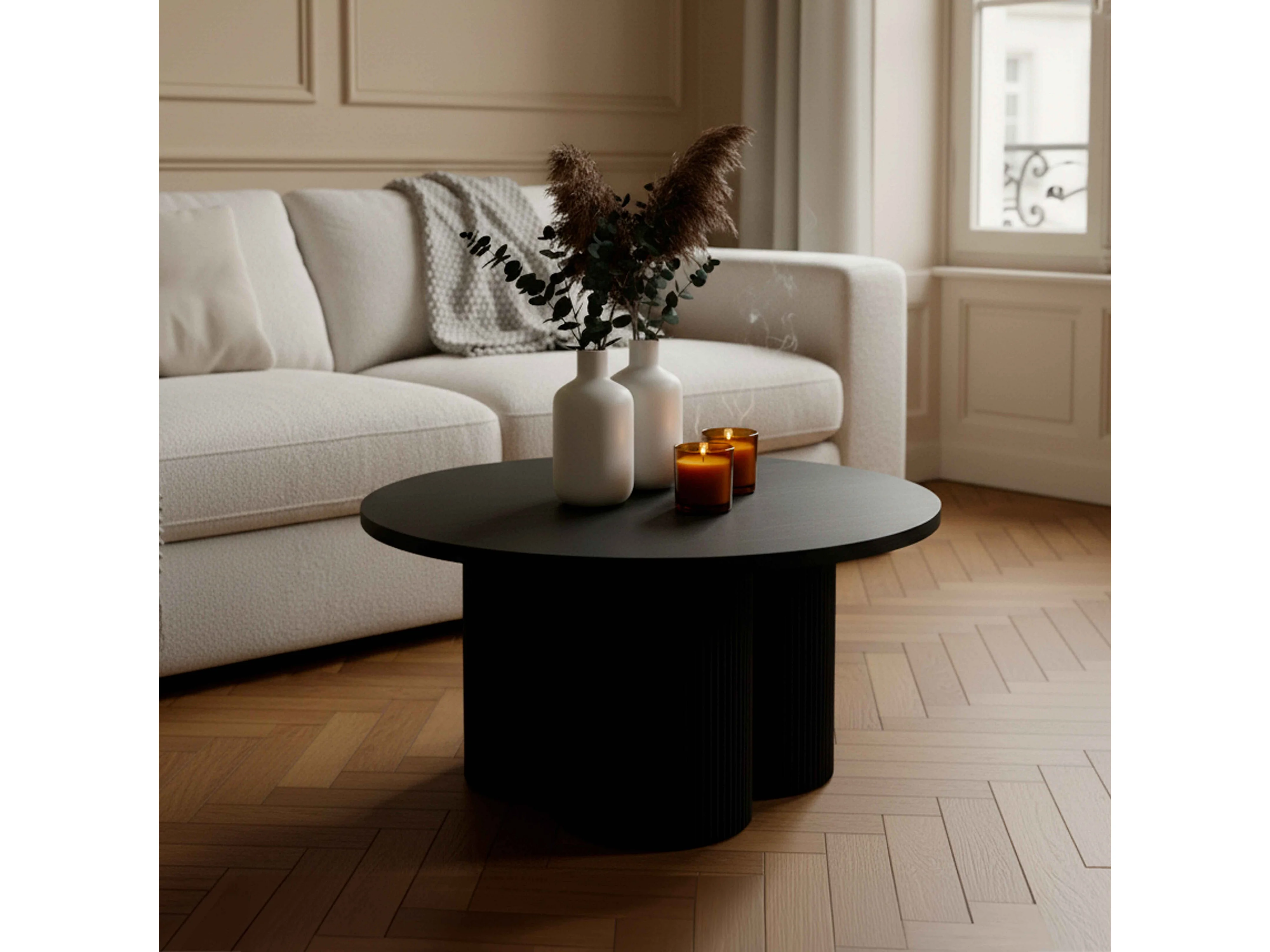 Table basse ronde 80 cm scandinave bois noir