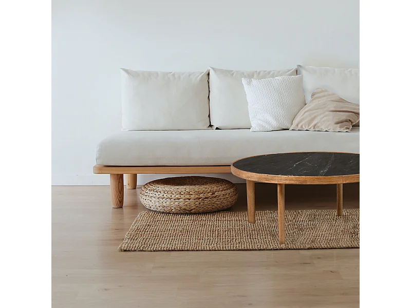 Table basse ronde 90 cm en bois de manguier et marbre noir - OCALA