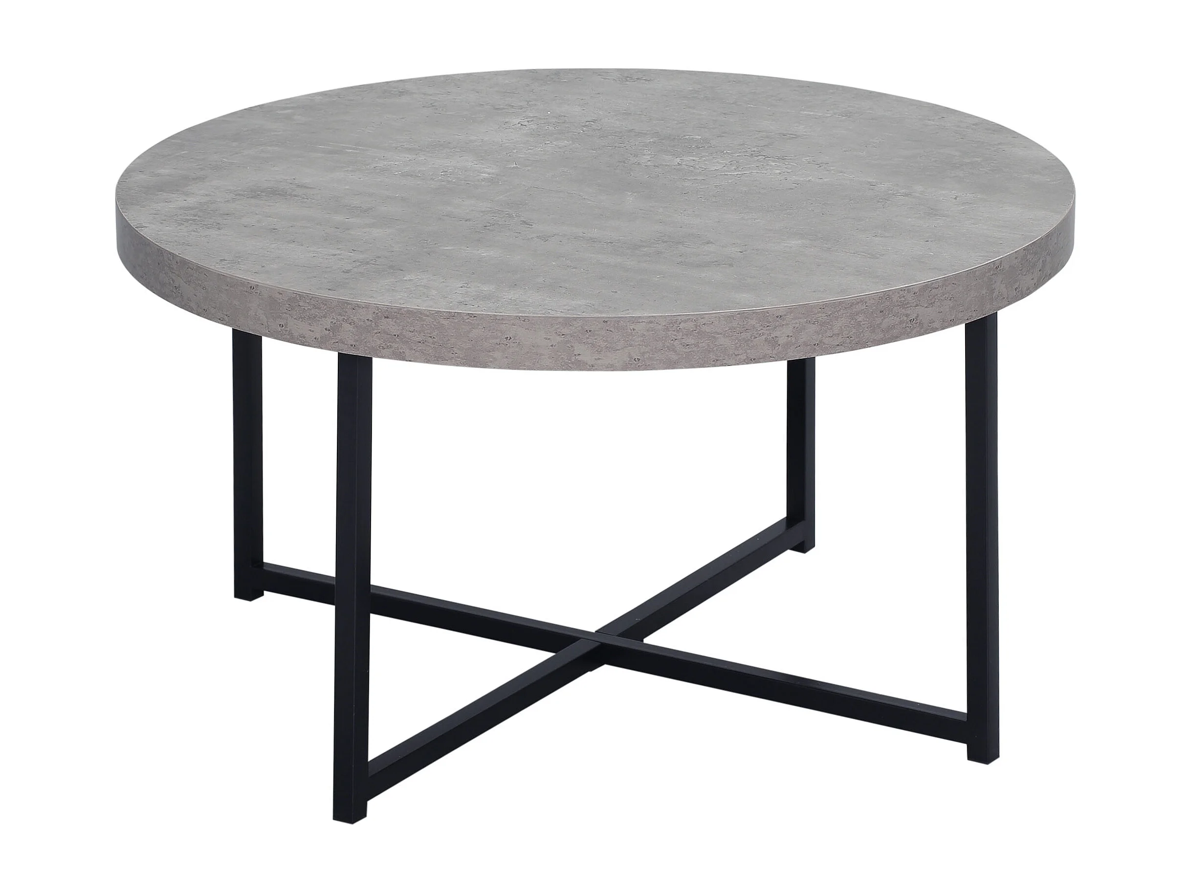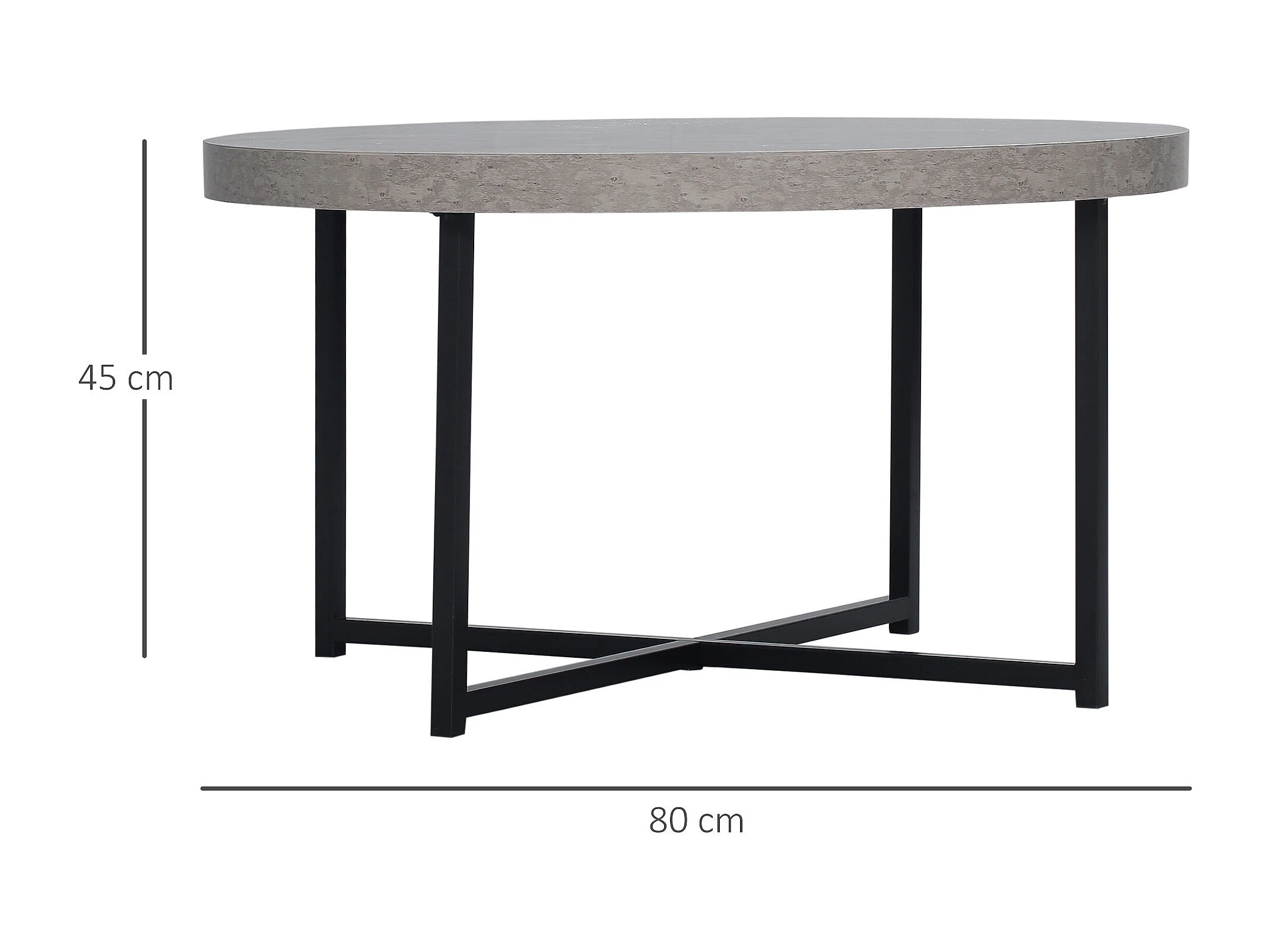 Table basse ronde design dim. Ø 80 x 45H cm piètement croisé métal noir plateau MDF effet béton ciré