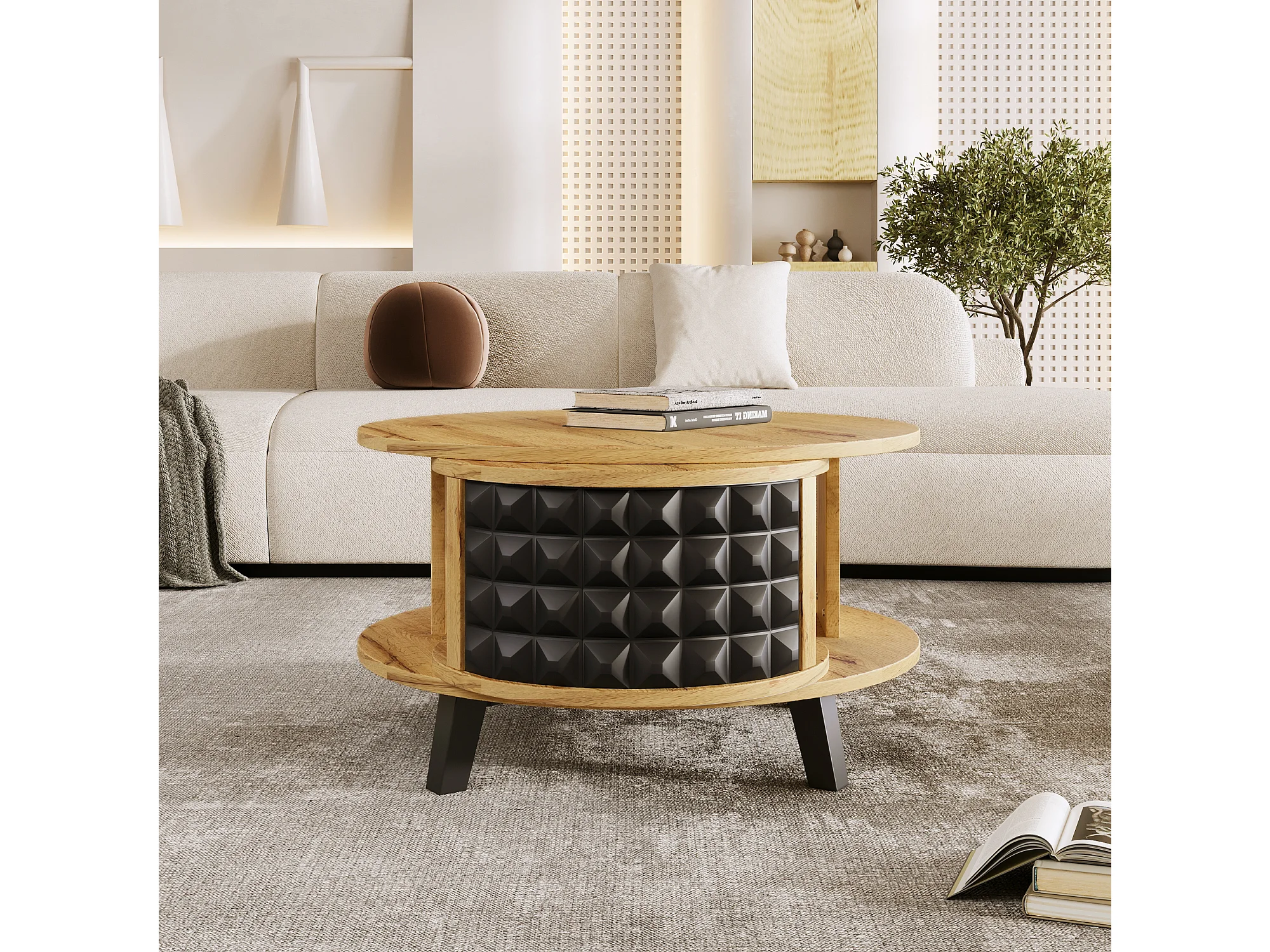 Table basse - avec rangement intérieur pivotant - Naturel & Noir