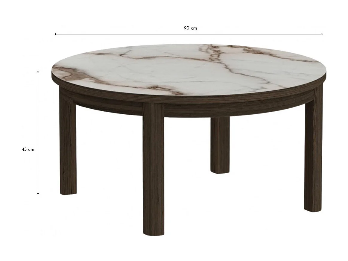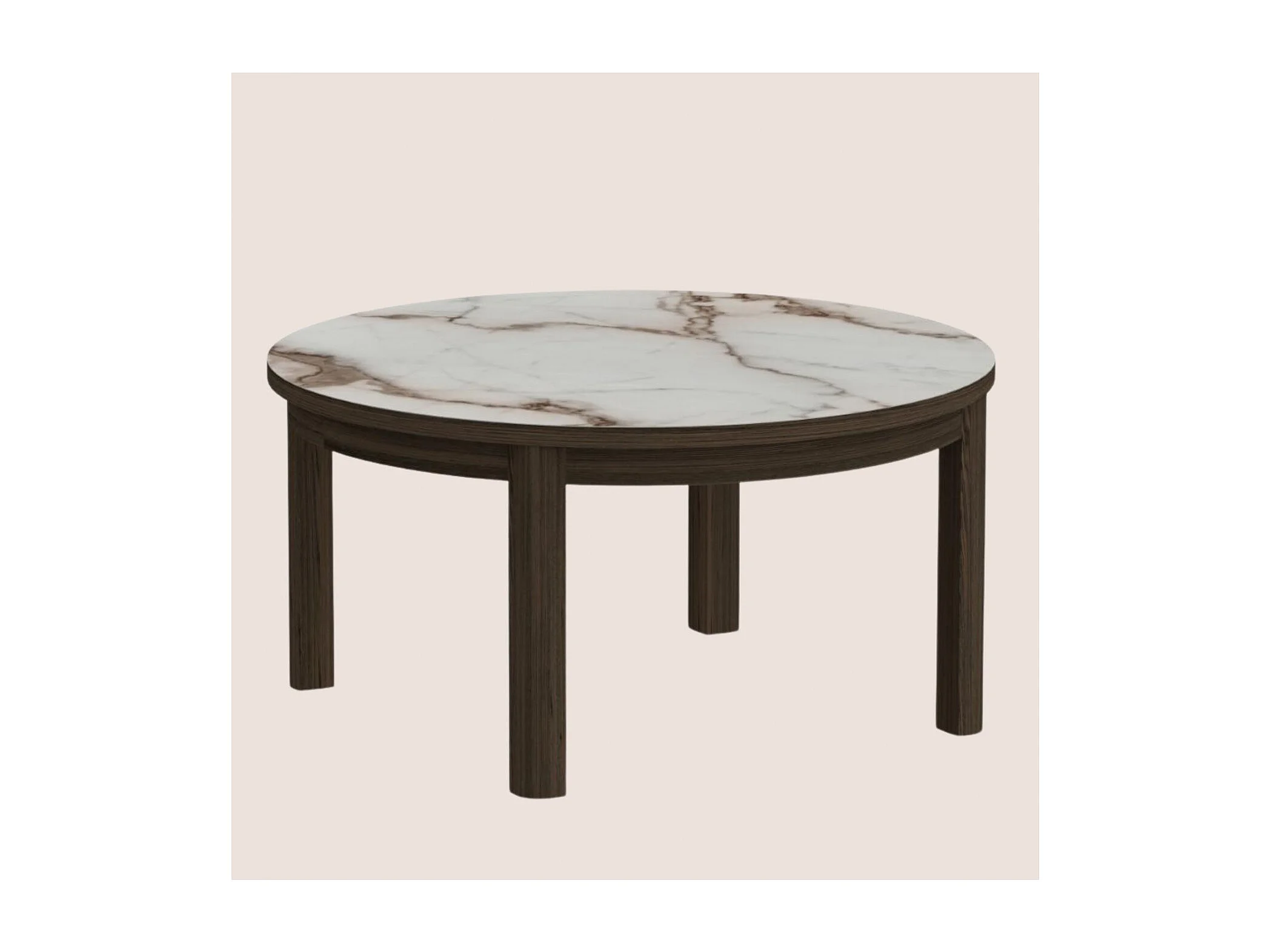 Table basse ronde en céramique et chêne fumé D90 - SIMONE