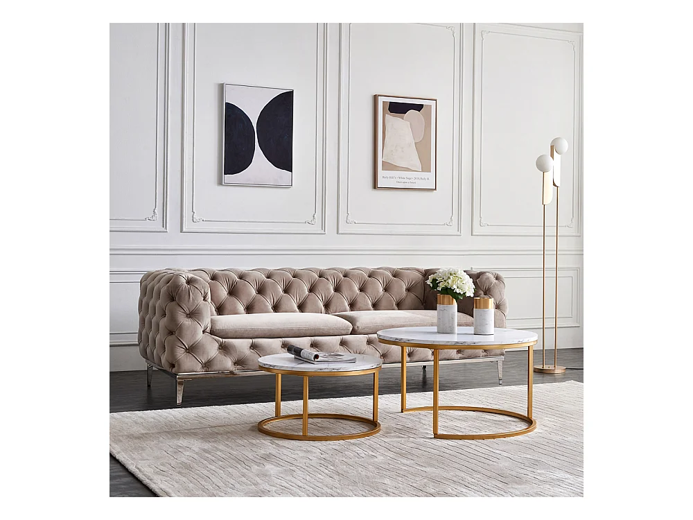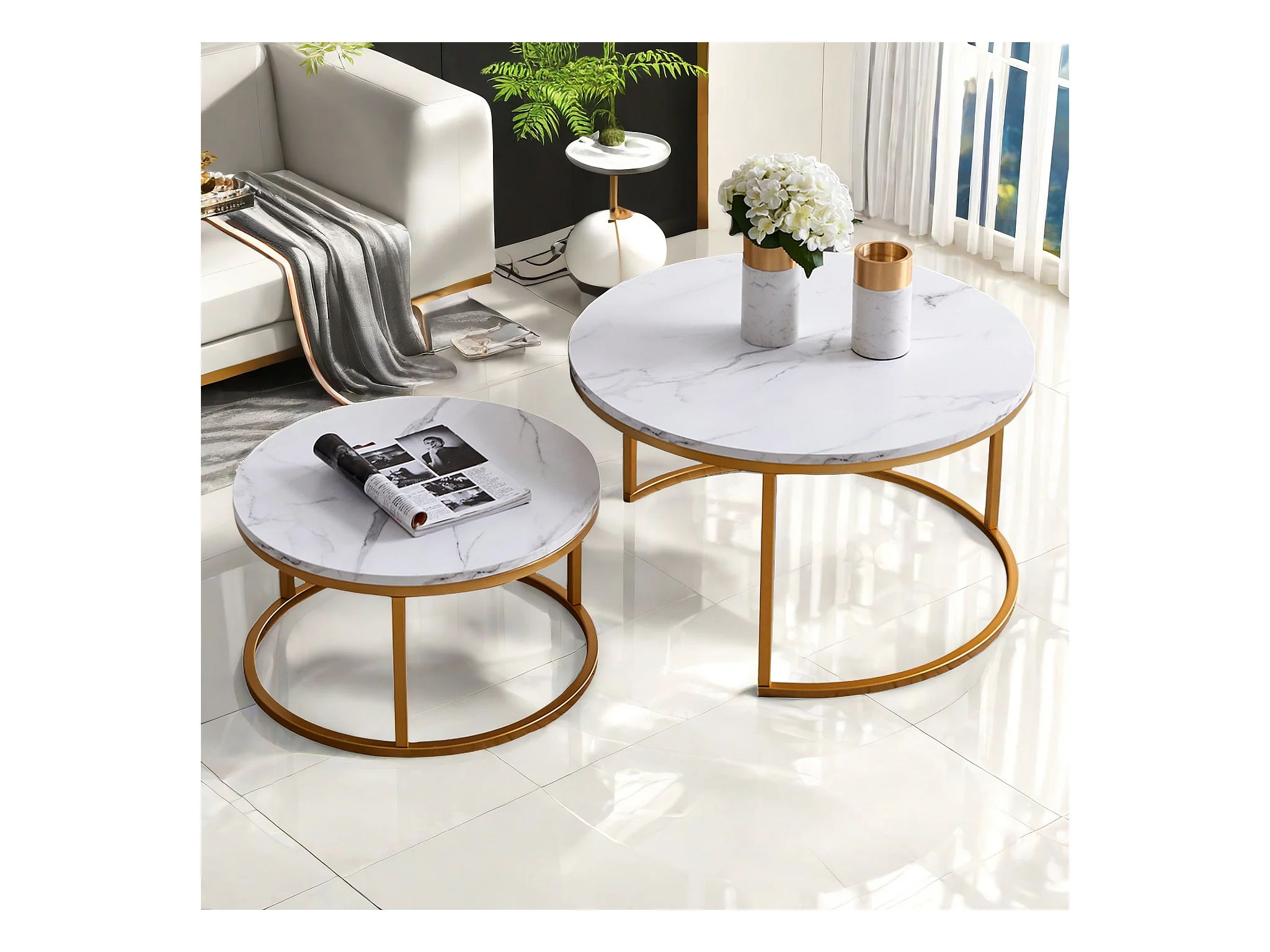 Table basse ronde en marbre blanc et or - Table de salon ronde Lot de 2 pour salon - Diamètre 80 cm Diamètre 60 cm