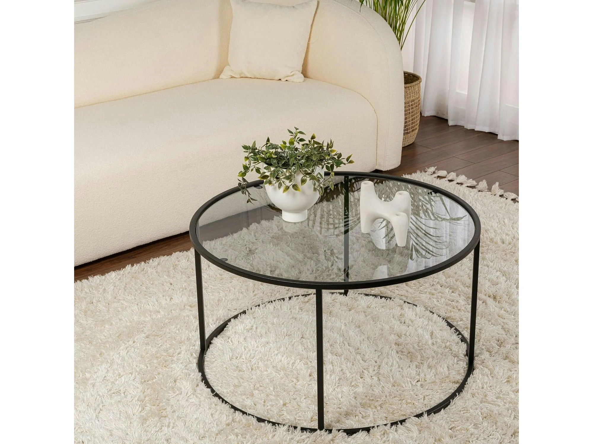 Table basse ronde en verre – cadre noir ⌀80 cm TULUM