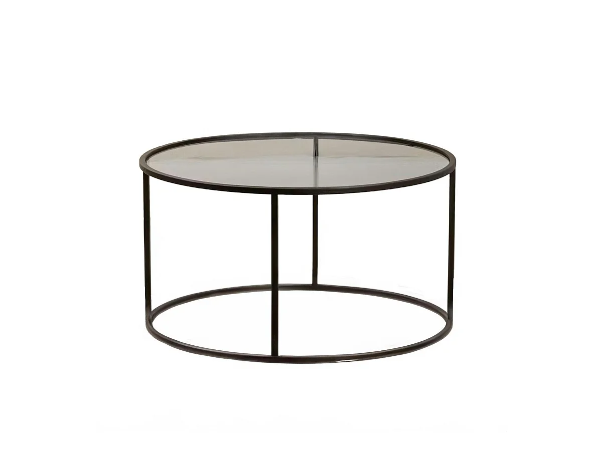 Table basse ronde verre fumé – cadre noir ⌀80 cm TULUM