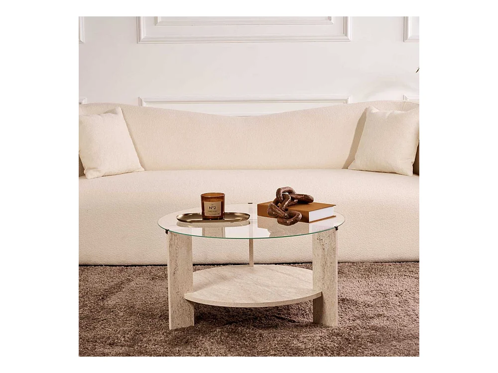 Table Basse Effet Marbre "Bootcut" 80cm Beige