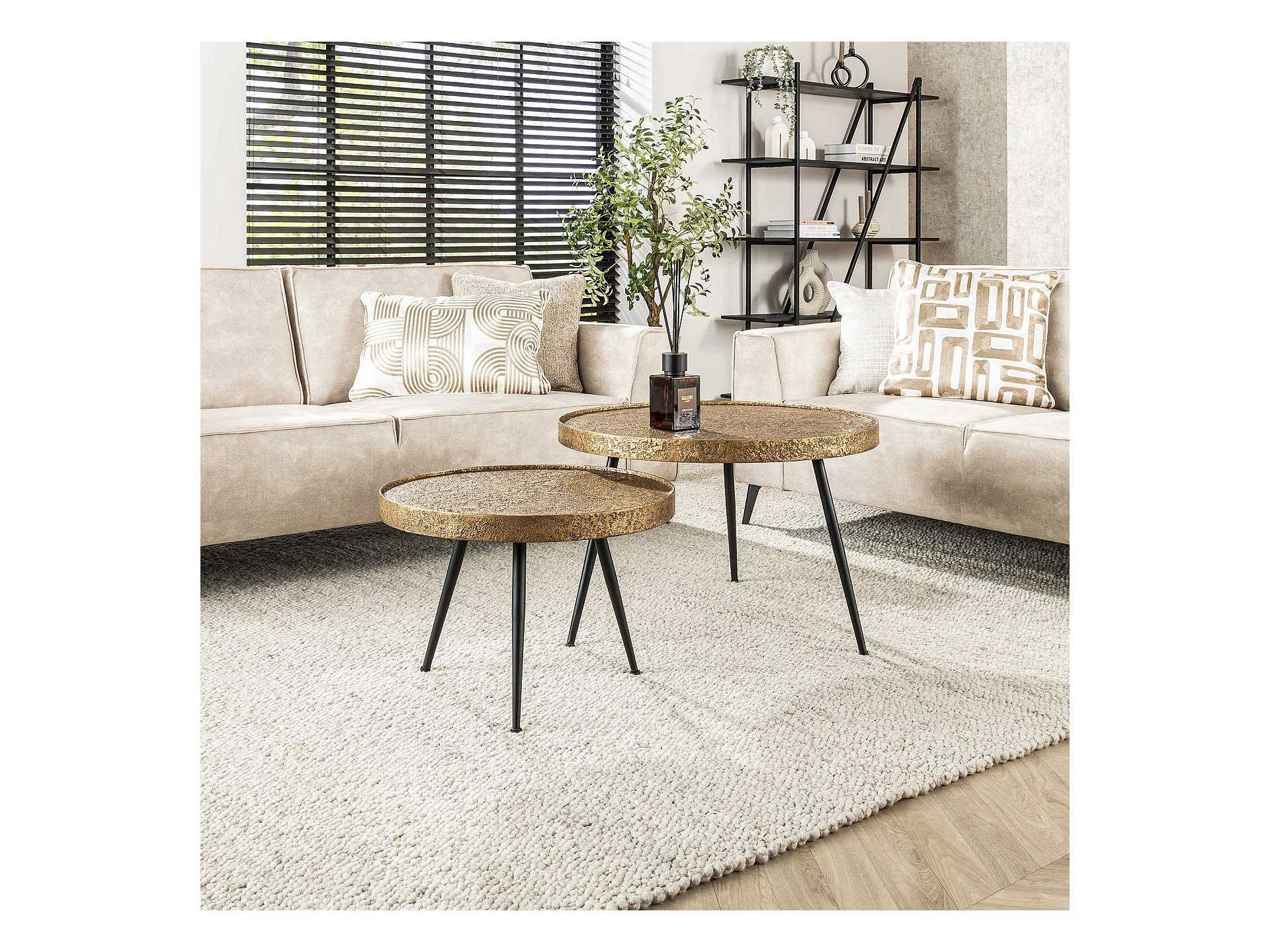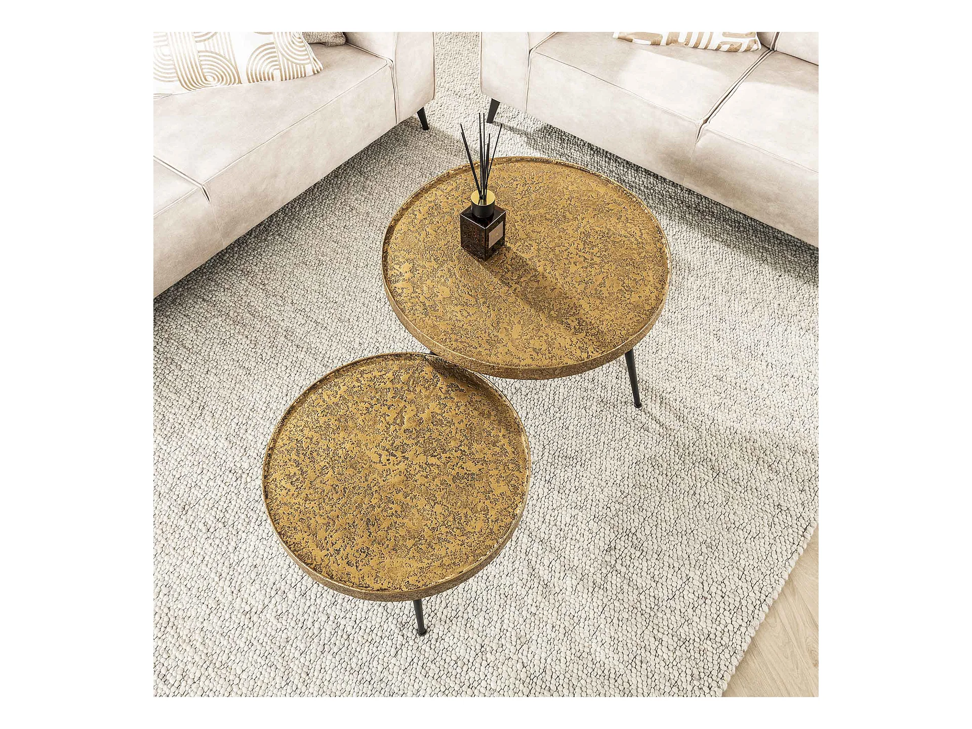 Table basse ronde métallique - Couleur or - Lot de 2