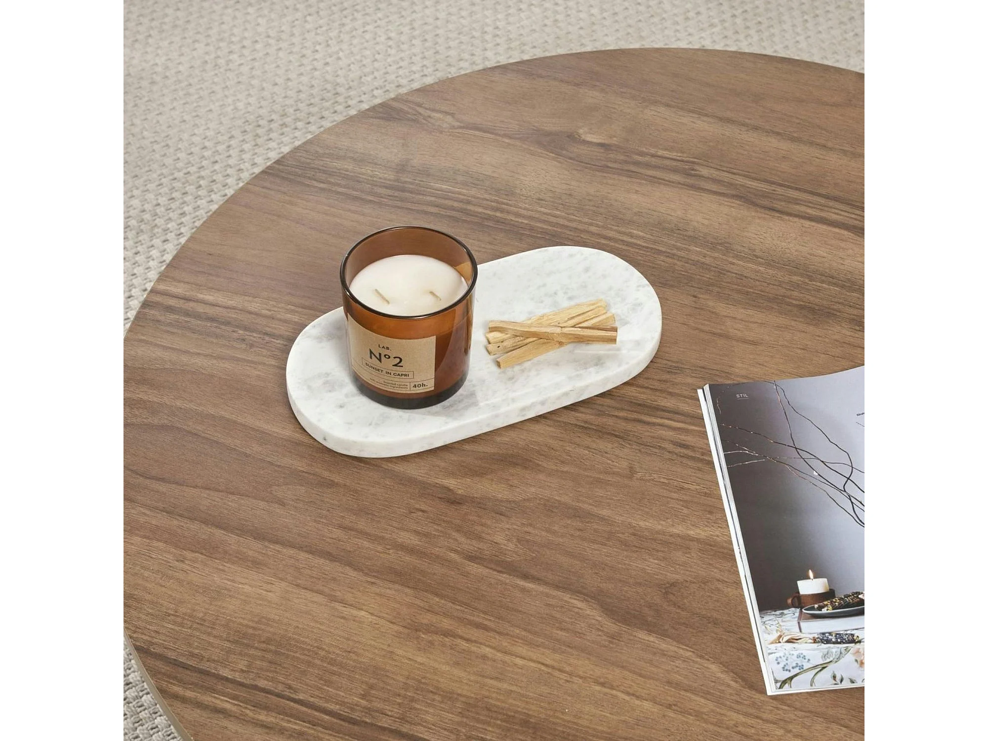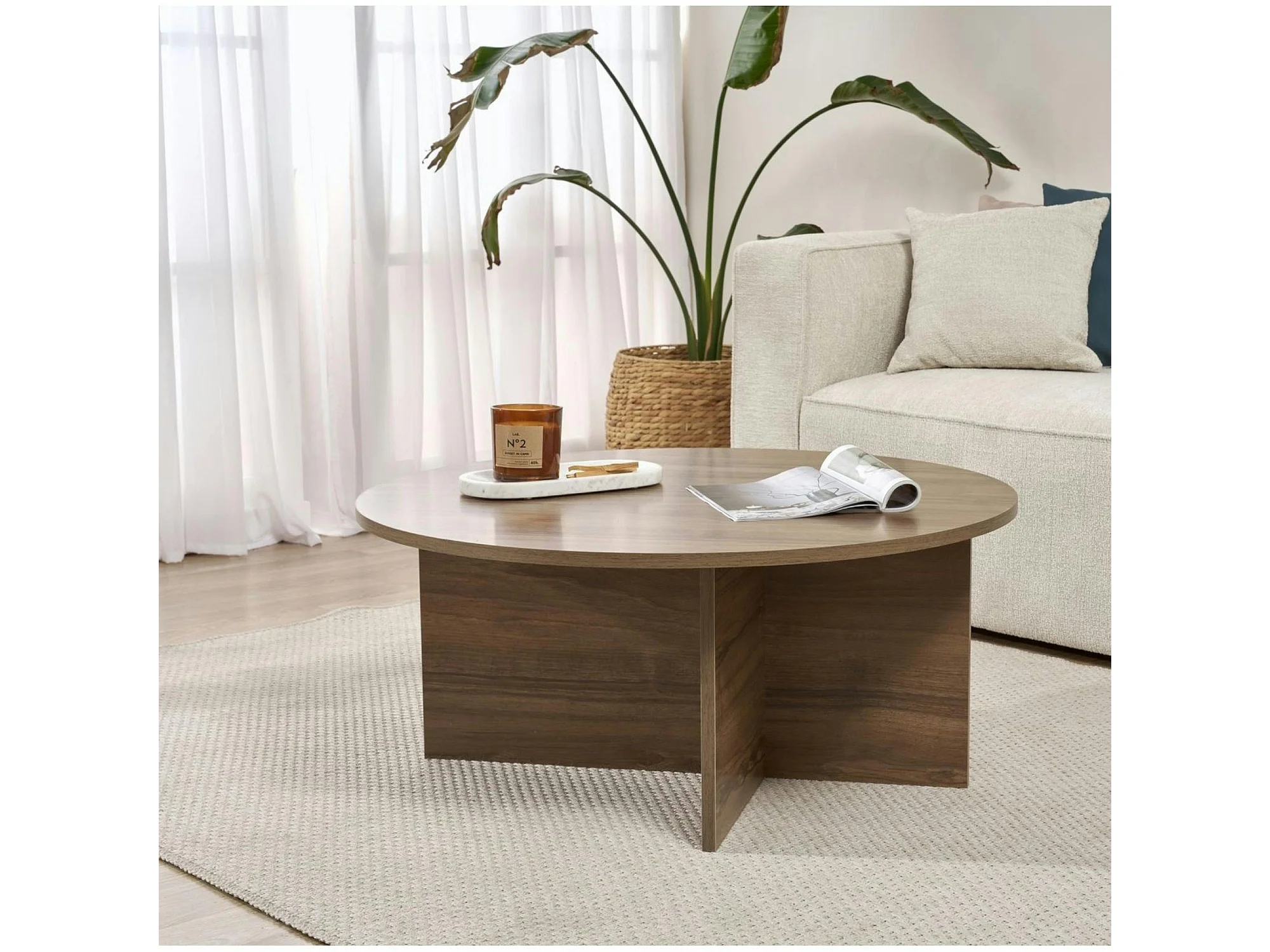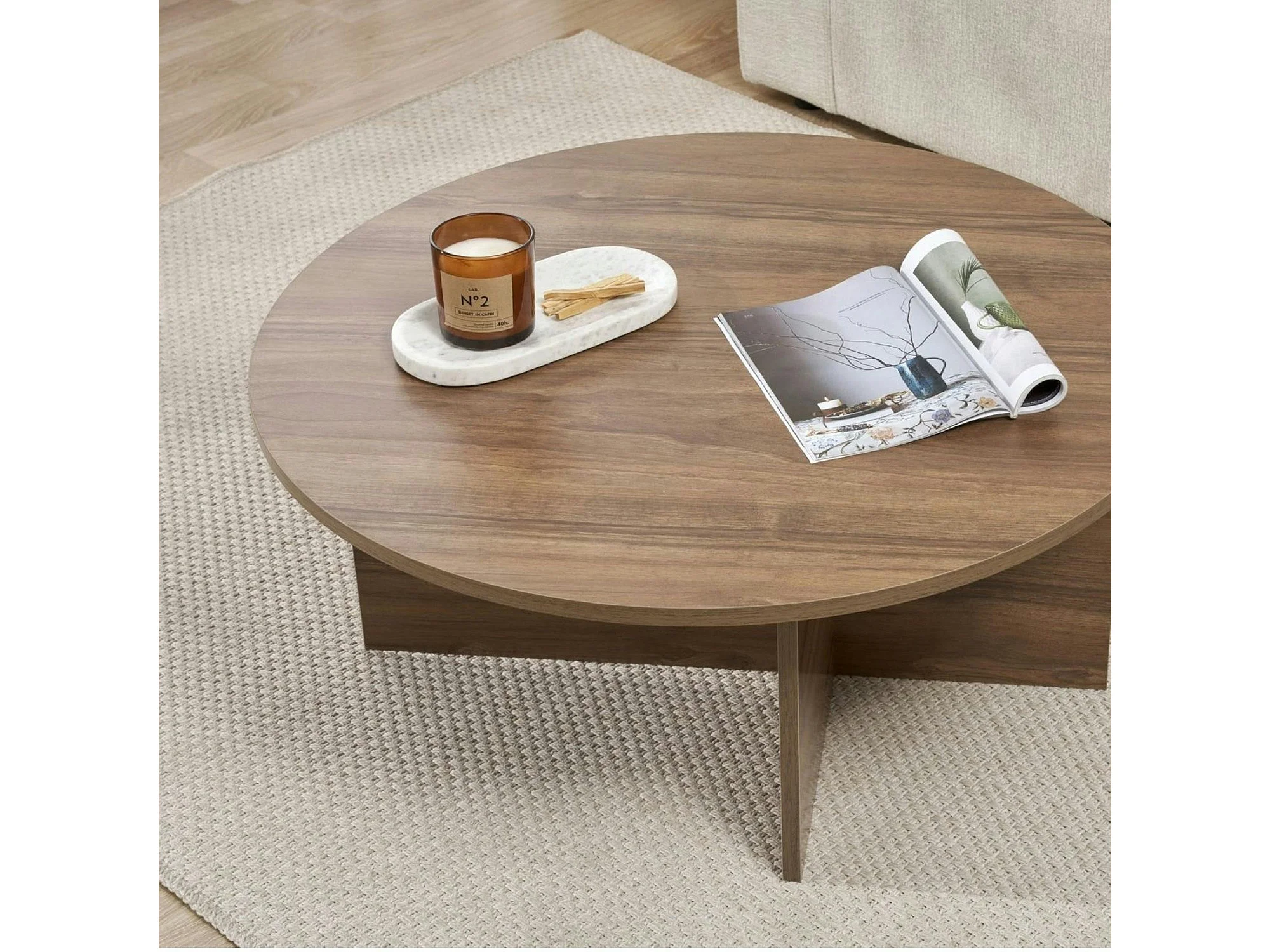 Table basse ronde minimaliste - effet bois de noyer MARFA
