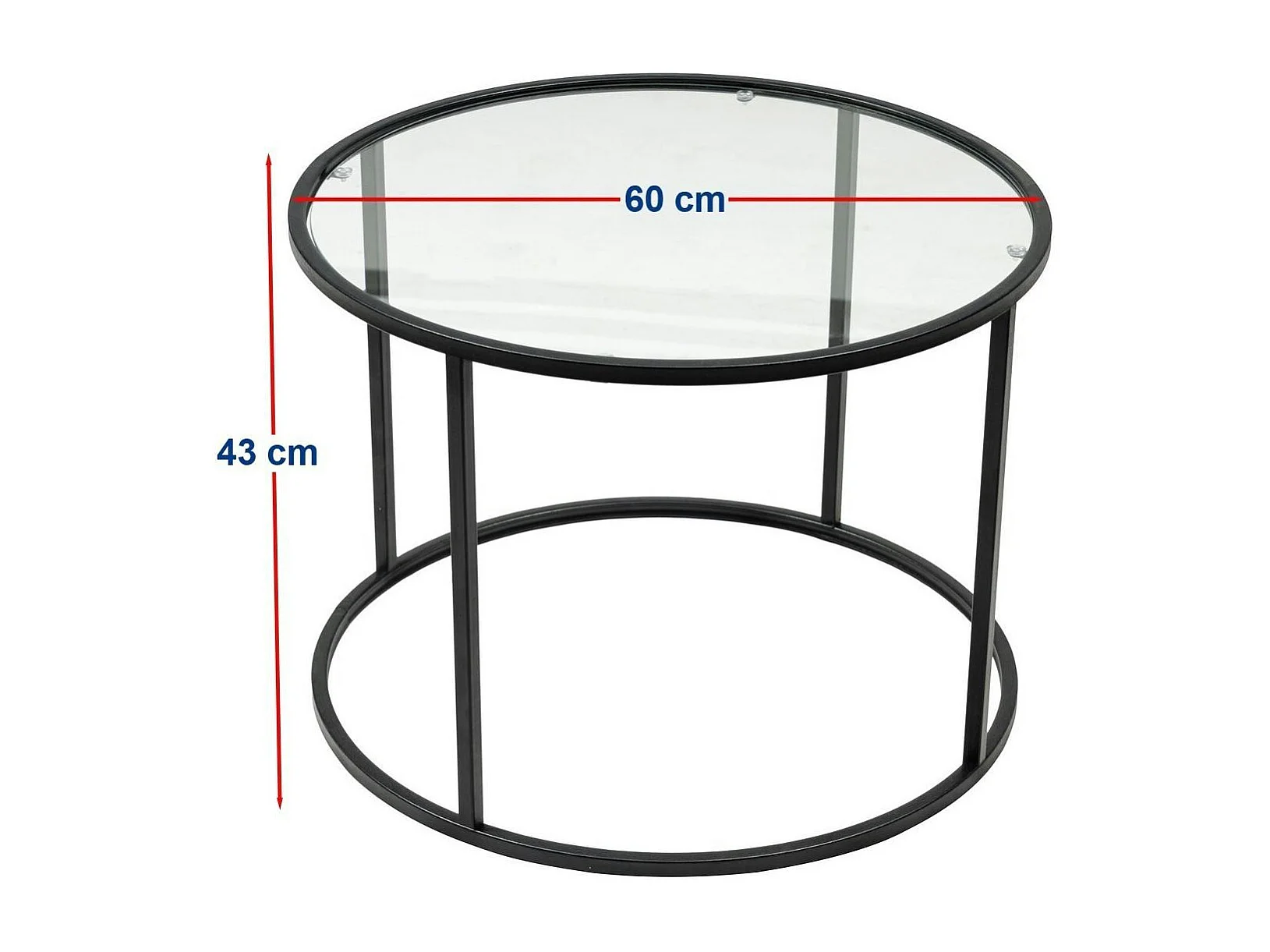 Table basse ronde verre ⌀60 cm - structure métal noir TULUM