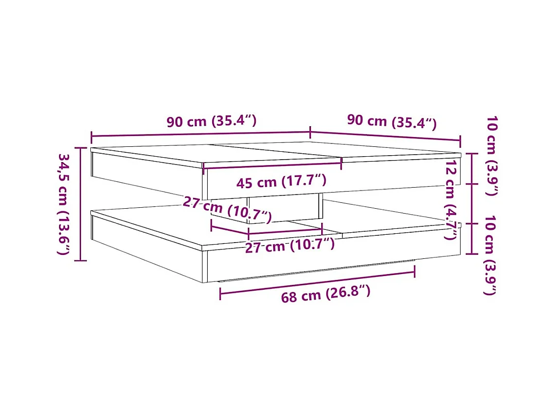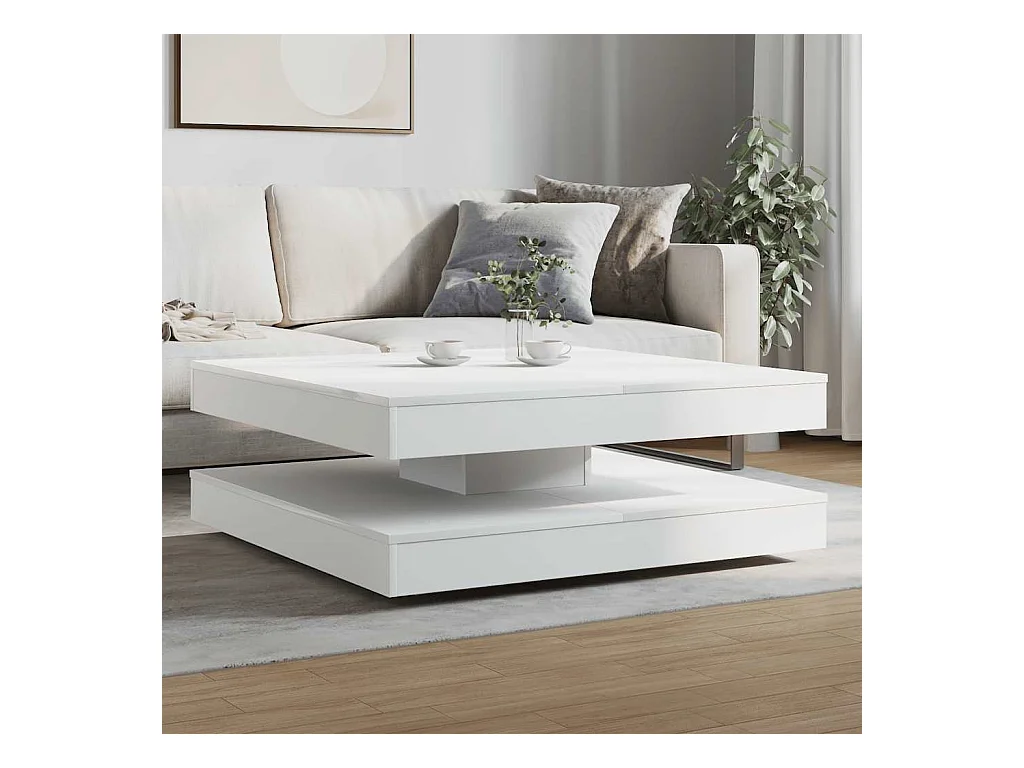 Table basse rotative à 360 degrés blanc 90x90x34,5 cm