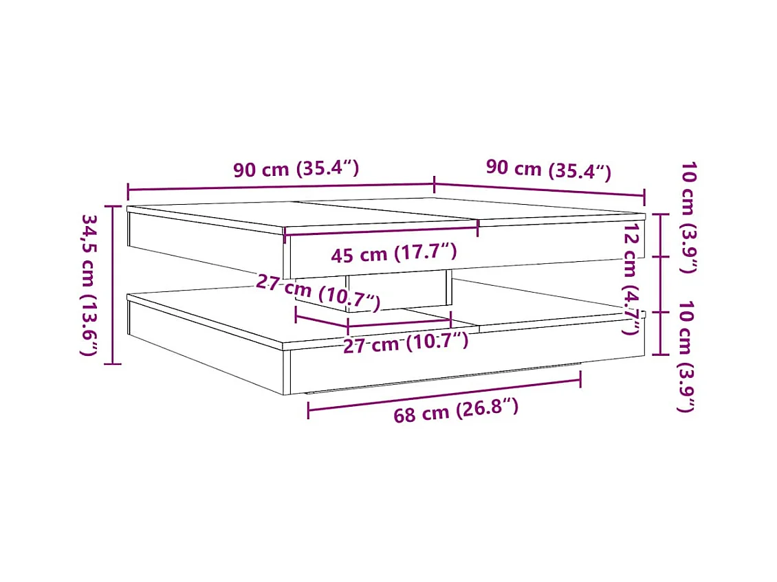 Table basse rotative à 360 degrés chêne fumé 90x90x34,5 cm