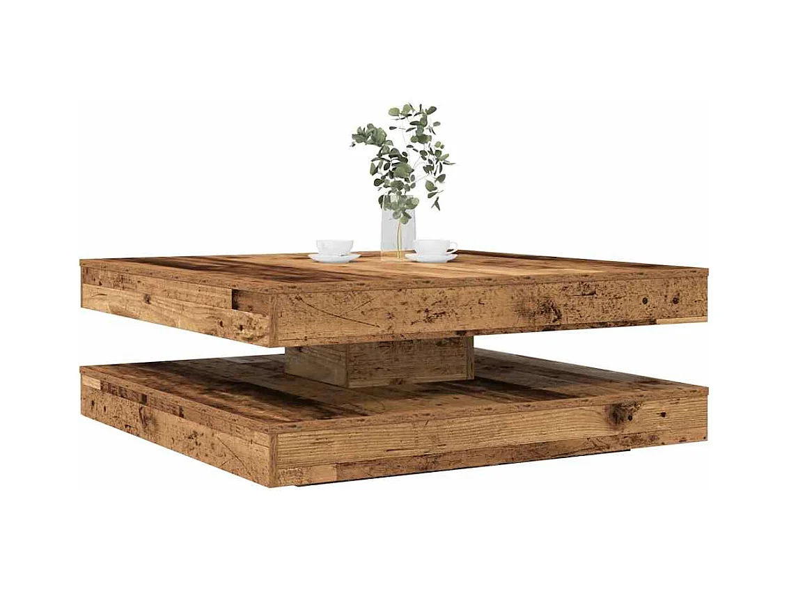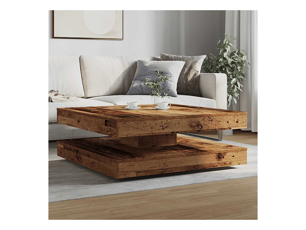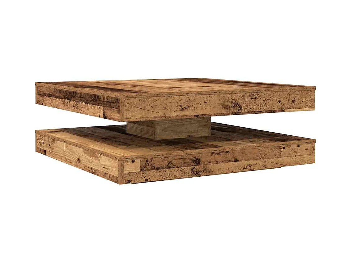 Table basse rotative à 360 degrés vieux bois 90x90x34,5 cm