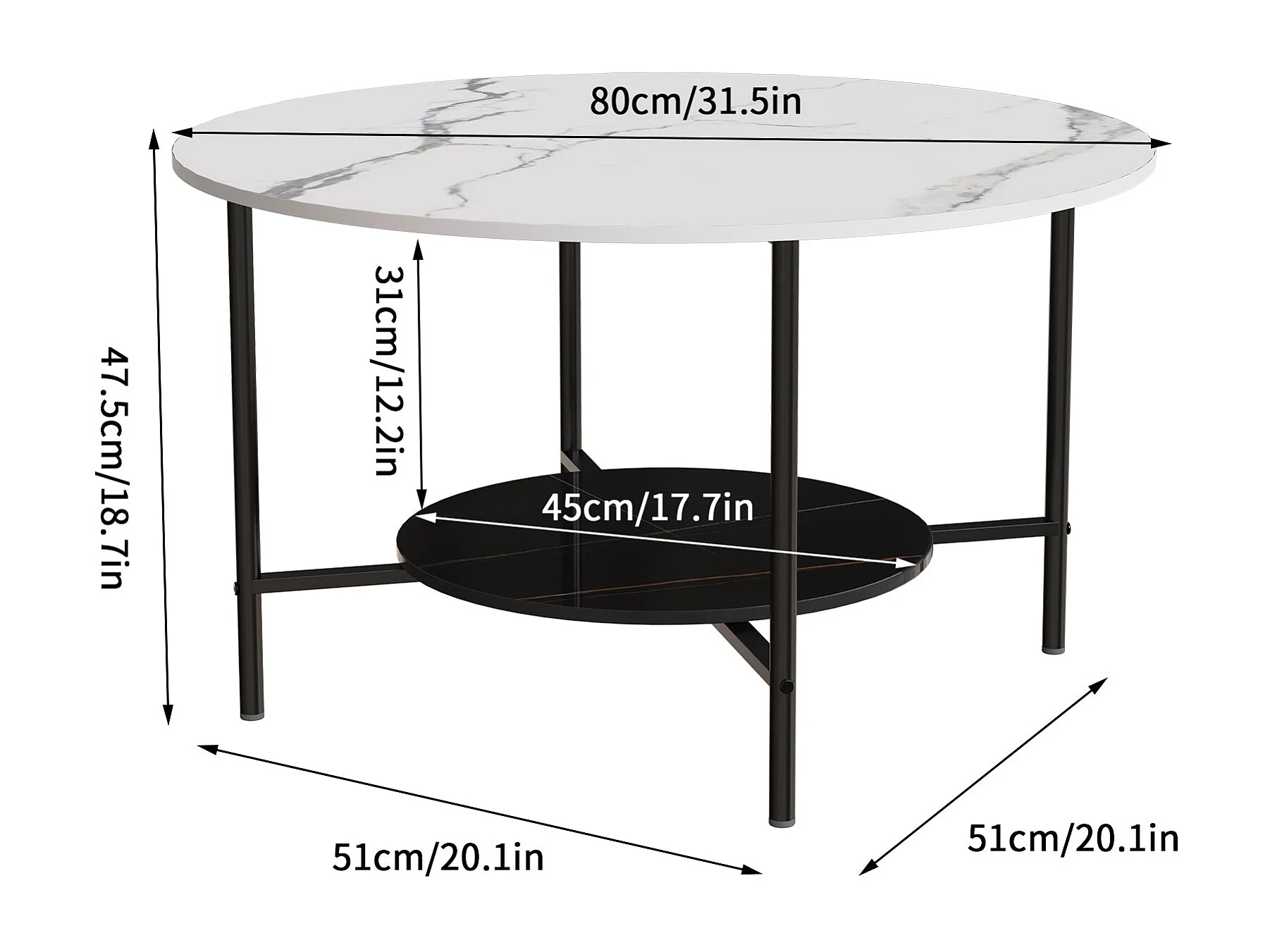 Table basse salon ronde en marbre design scantinave pour salon bureau café 80x80x47.5cm