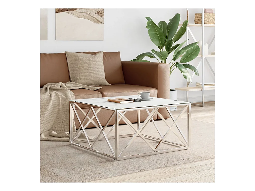 Table basse salon-Table d'appoint argenté 80x80x40 cm acier inoxydable et verre SHL44945